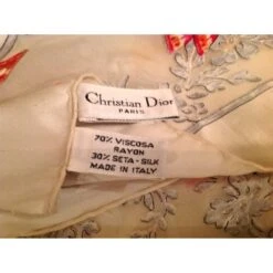 Christian Dior Carré Soie Fleur Bleue Vert Orange Marron Foncé