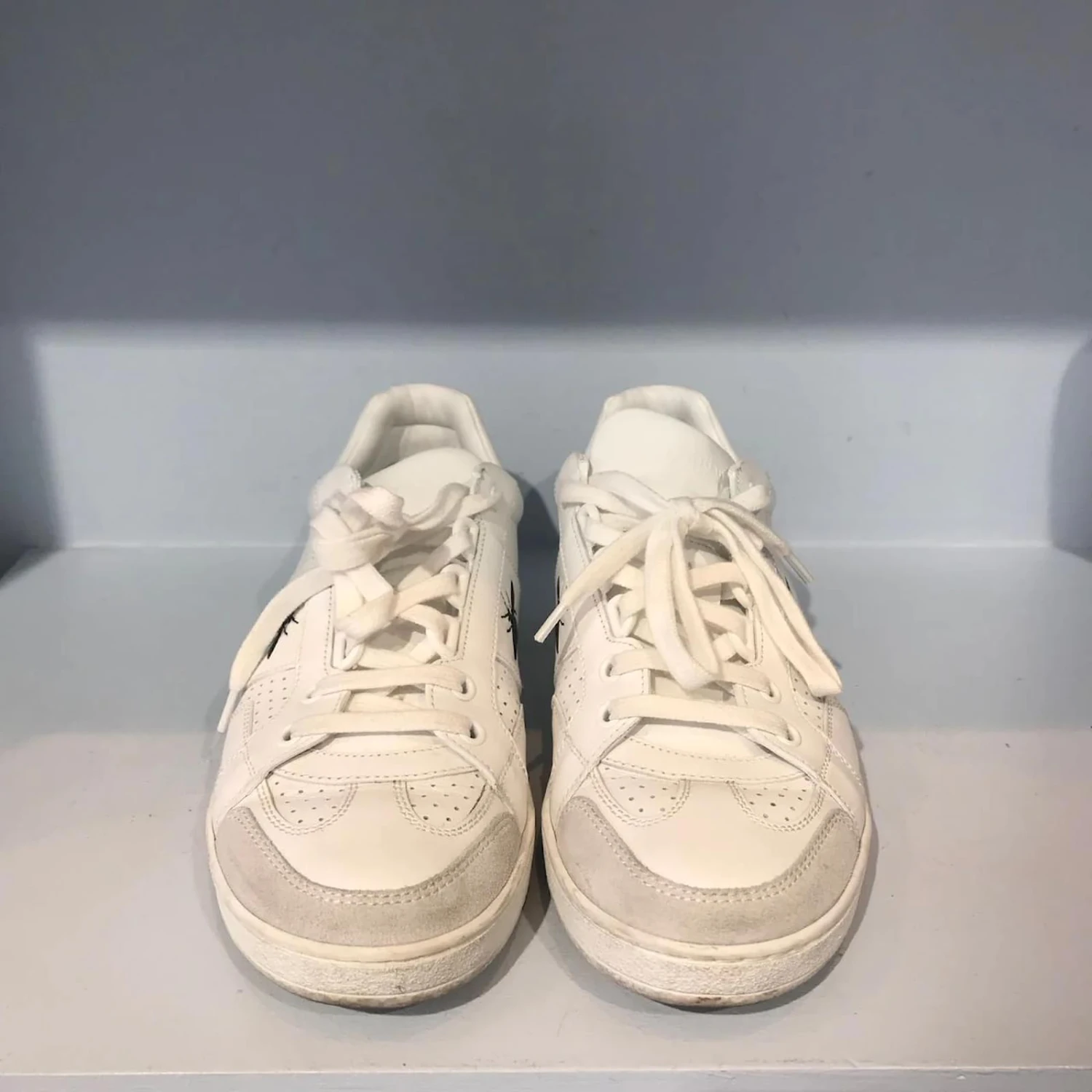 Baskets à lacets en cuir blanc, CD abeille et initiales en cuir noir sur le côté.