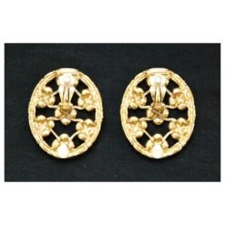 Christian Dior NEUF VINTAGE BOUCLES D’OREILLES DIOR CANNAGE CLIP EN METAL DORE GOLDEN EARRINGS Doré