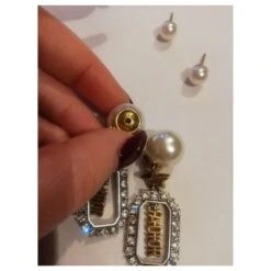 Christian Dior Tribales Clous D’oreilles Abeille Et Étoile En Fausse Perle Blanche Écru