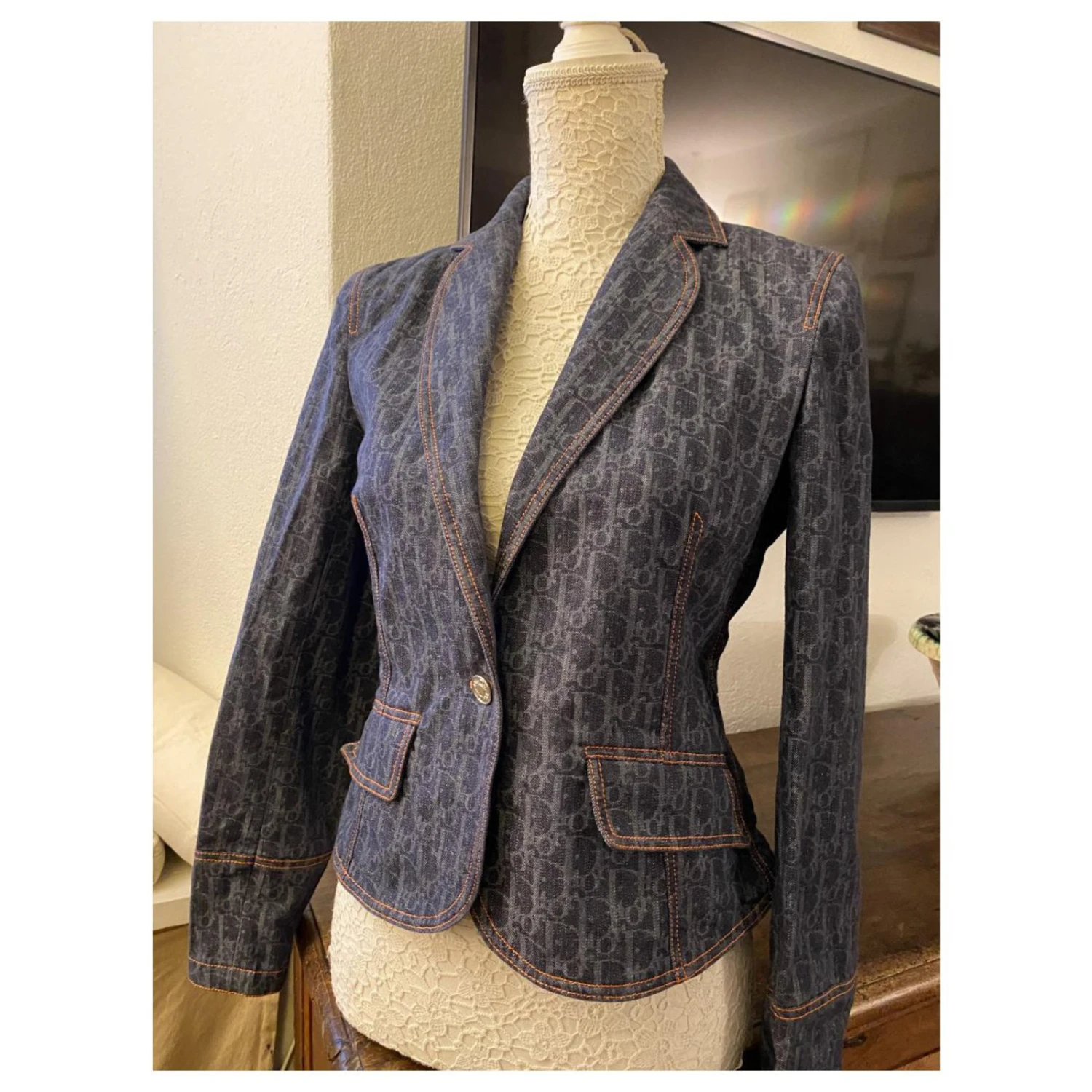 Blazer Dior rare en jean de coton avec le monogramme typique
