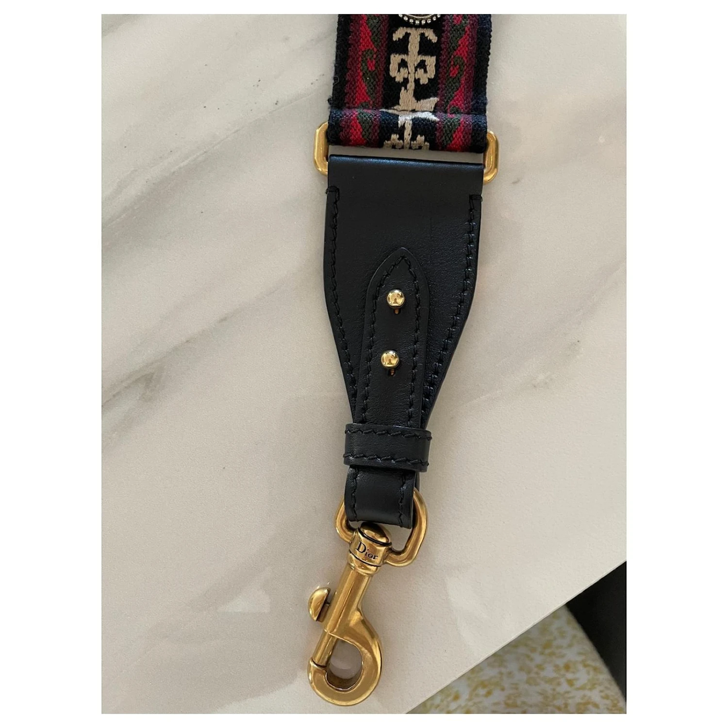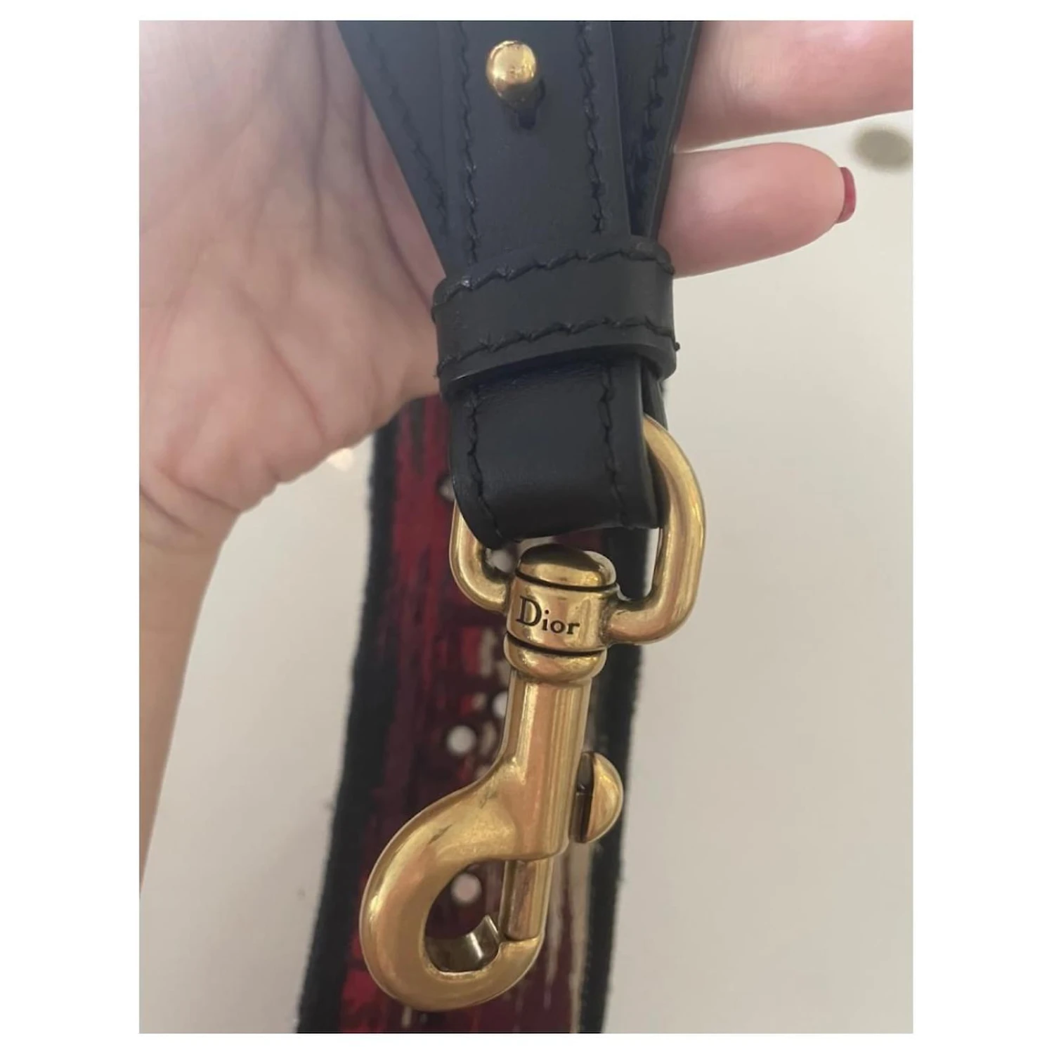 Magnifique sac bandoulière Dior en cuir , brodé aux couleurs bordeaux et noir ! Empiècements en cuir de veau noir
