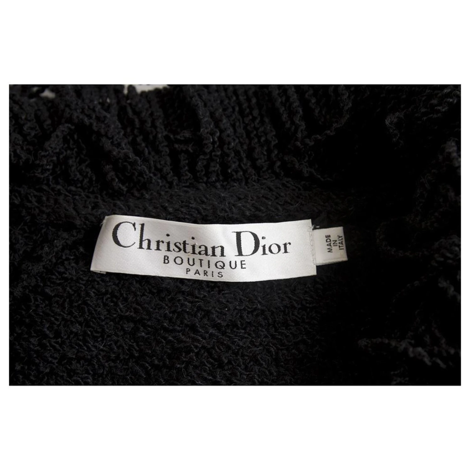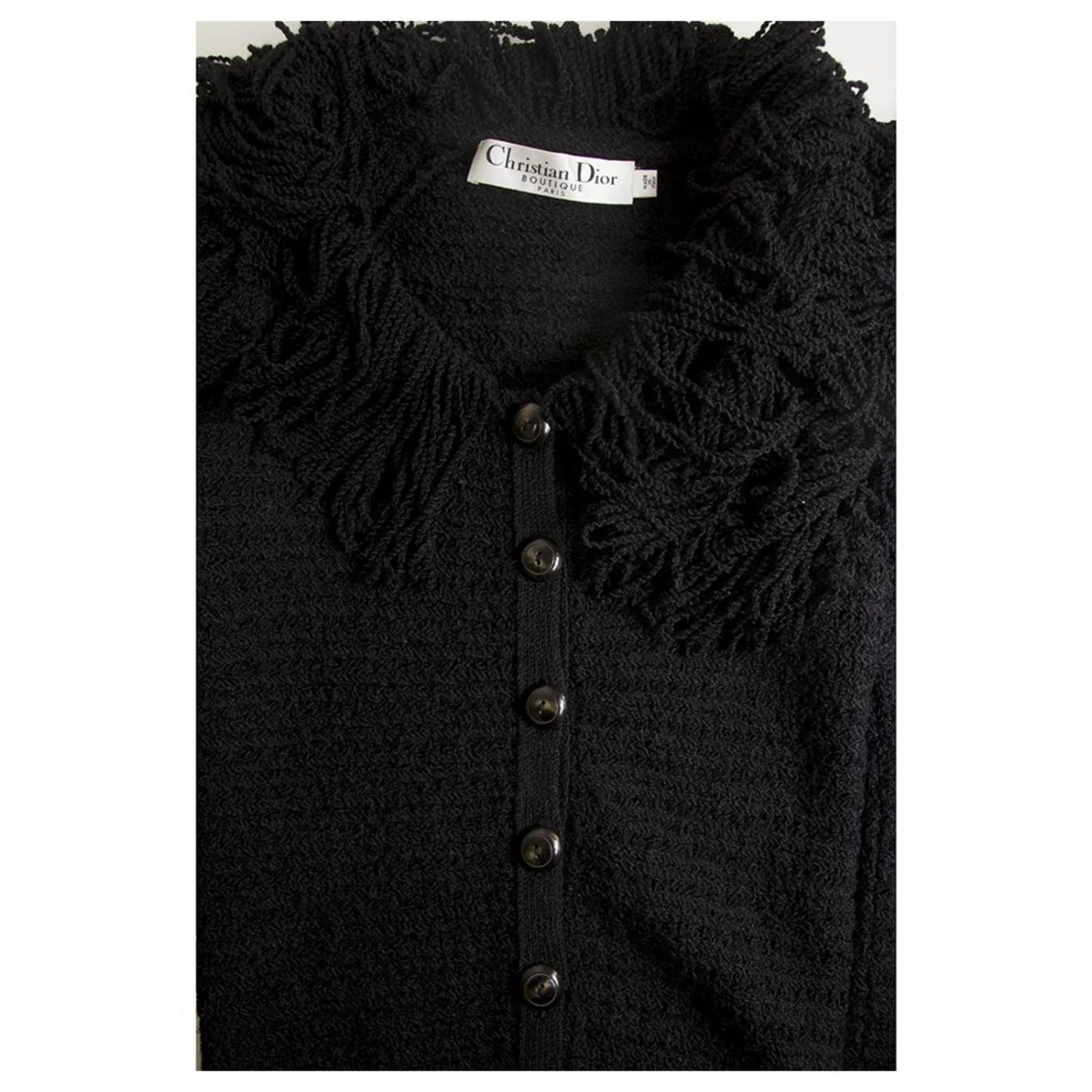Ce cardigan en tricot de laine mélangée noir Christian Dior est un incontournable de la garde-robe !! Avec une couleur polyvalente, fermeture à bouton, profond décolleté en V, col frangé, manches longues et style charmant est le choix parfait pour un look chic et décontracté, vêtements de bureau ou pour rehausser le denim du week-end.