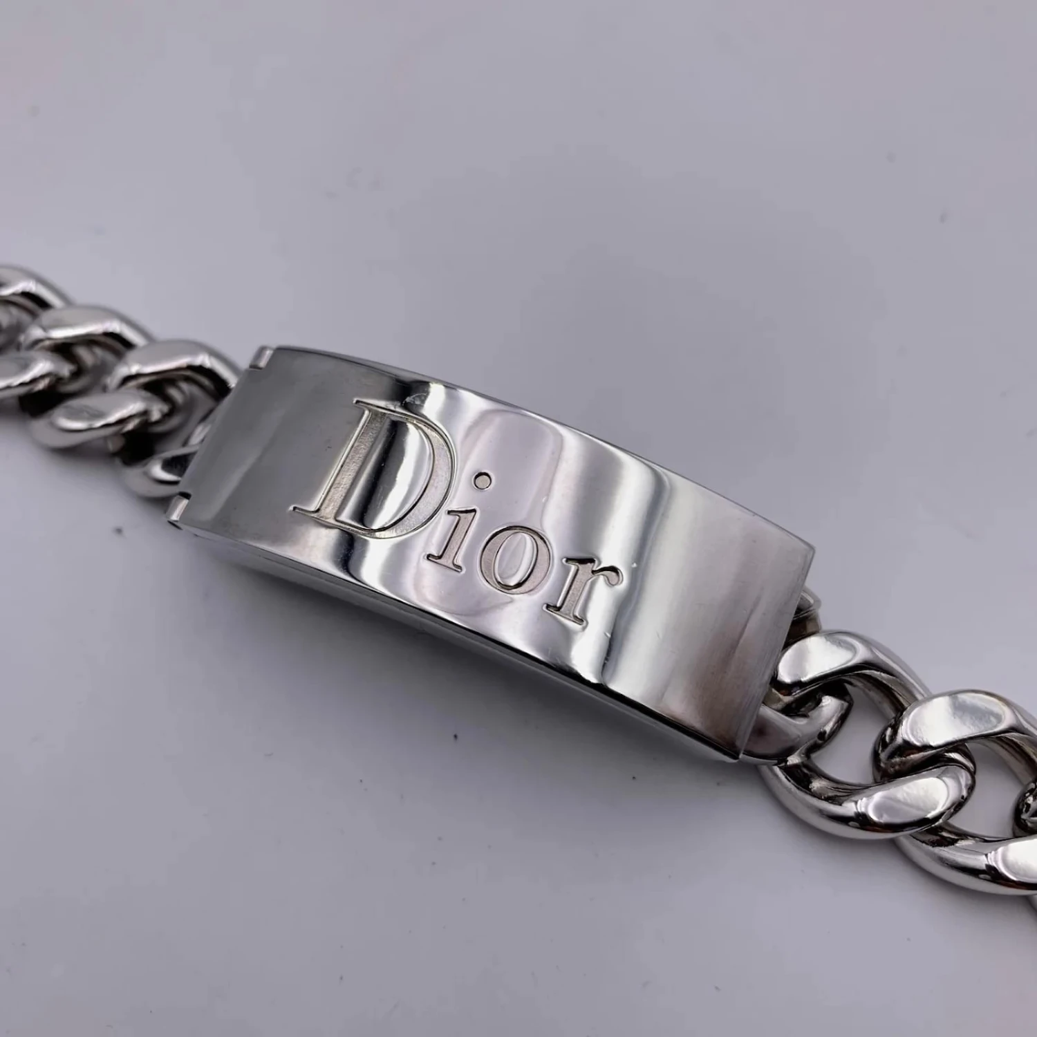 Bracelet chian Christian Dior Gourmette Lip Gloss 2006. Le bracelet comporte gravé « DIOR » sur la plaque supérieure, grosse chaîne en métal argenté. Le dessus s’ouvre et il a 2 brillant à lèvres solide. Made in France. longueur totale: 7.5 Pouces – 19 cm. Condition A – EXCELLENT Les gloss sont en parfait état et n’ont jamais été utilisés. Veuillez vérifier attentivement les photos et demander tout détail demandé. Détails MATÉRIEL: Couleur métal: Modèle argenté: N.A. Le sexe: Femme PAYS DE FABRICATION: France MÉTAL: STYLE inconnu: Chaîne LONGUEUR DU BRACELET: 7.5 Pouces – 19 TYPE DE FERMETURE: Bijoux Fermoir FERMETURE: Fermoir Bijoux VINTAGE?: Non ANNÉE DE FABRICATION: 2000-2009 BOX?: NO