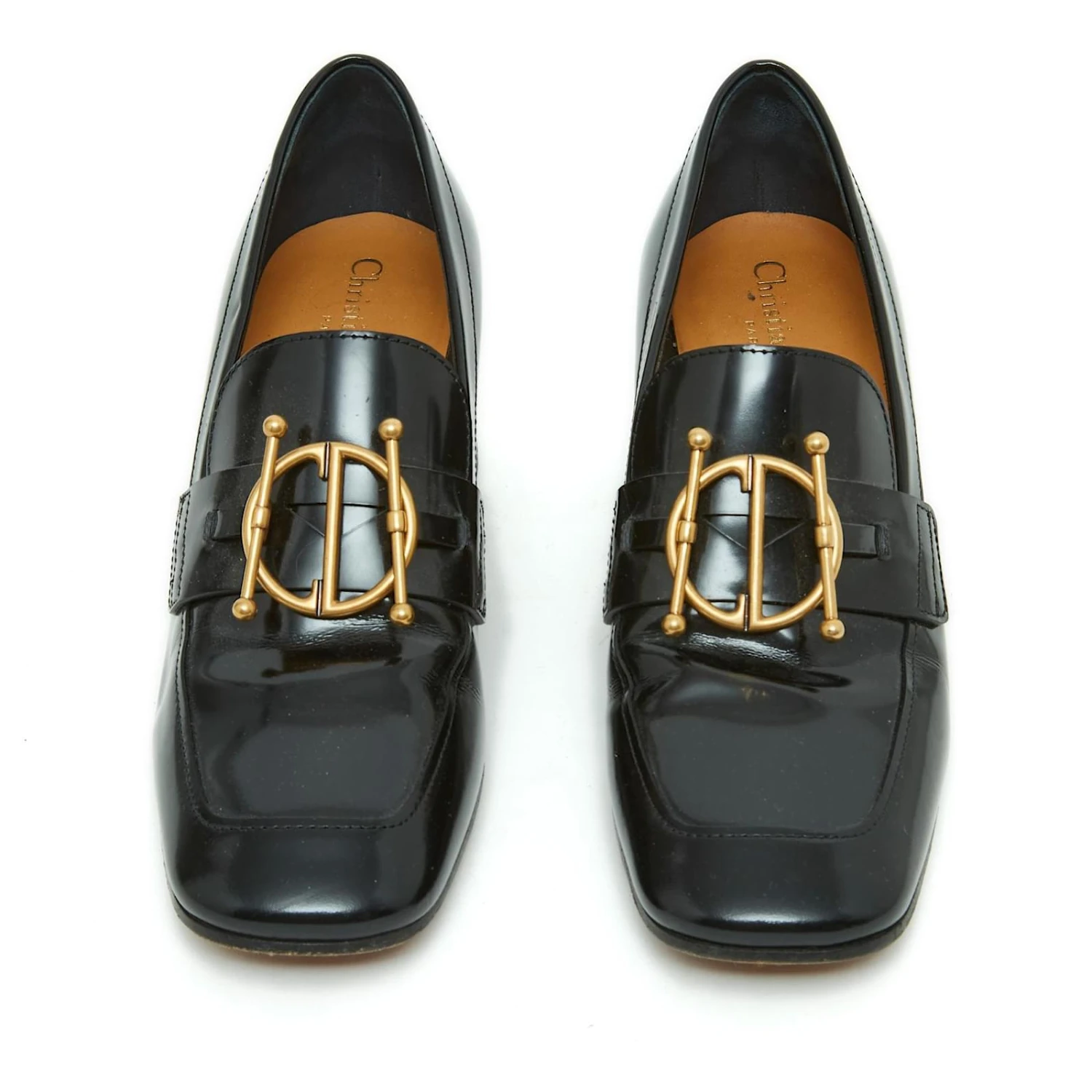 Mocassins Dior modèle DiorDirection en cuir glacé noir et métal doré. Pointure 38.5FR, talon 5.5 cm, semelle intérieure 24.7 cm. Les mocassins ont été portés une unique fois et ils sont en très bon état, livrés dans un dustbag Dior. Prix boutique 890 €.
