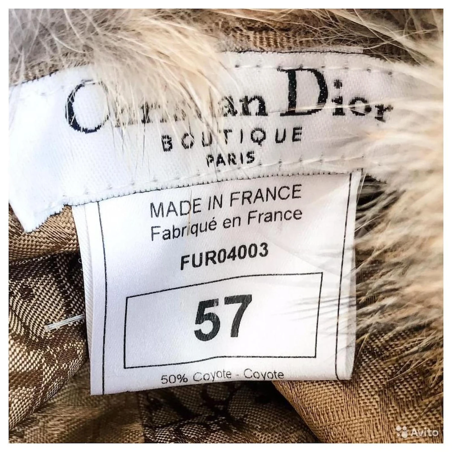 Une incroyable casquette d’hiver en fourrure de coyote de Christian Dior de la SS 2002 Collection Dior Street Chic avec une doublure dans l’imprimé le plus reconnaissable du créateur : Diorissimo.