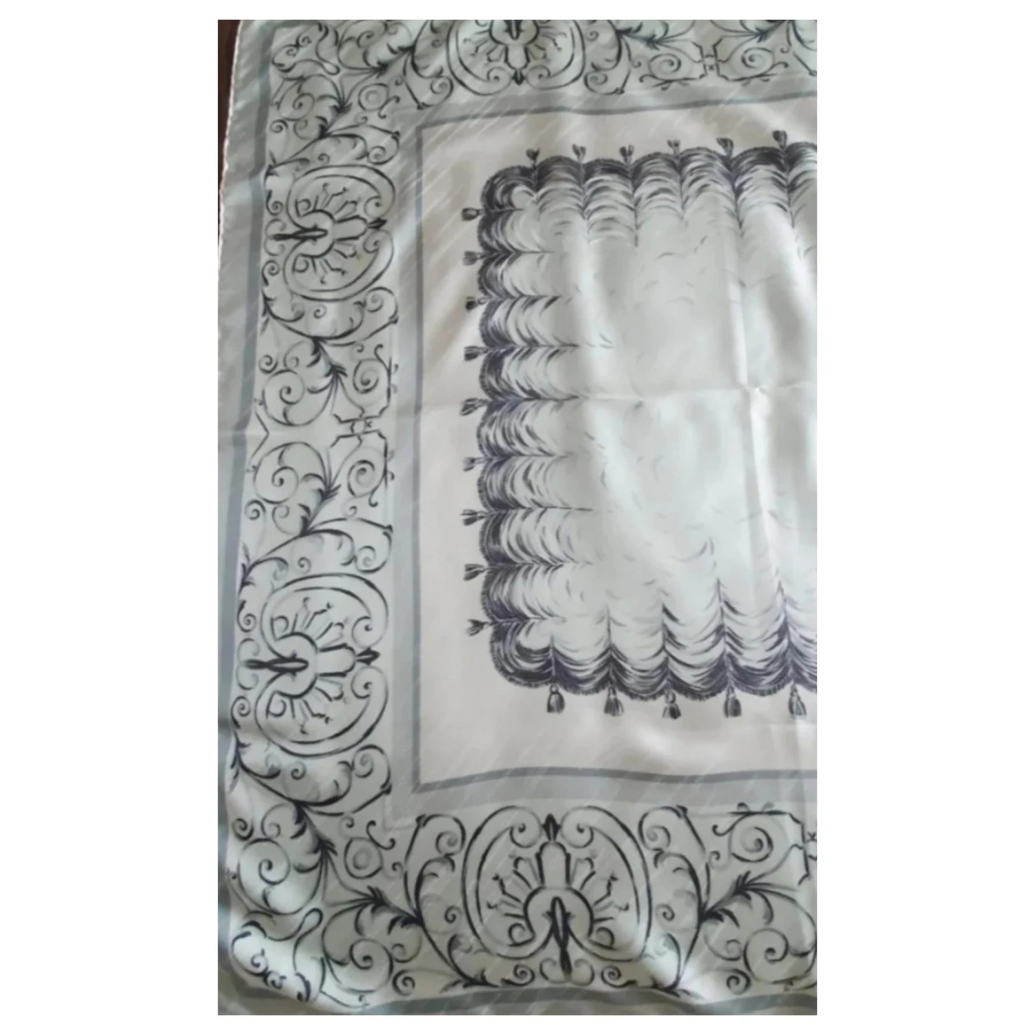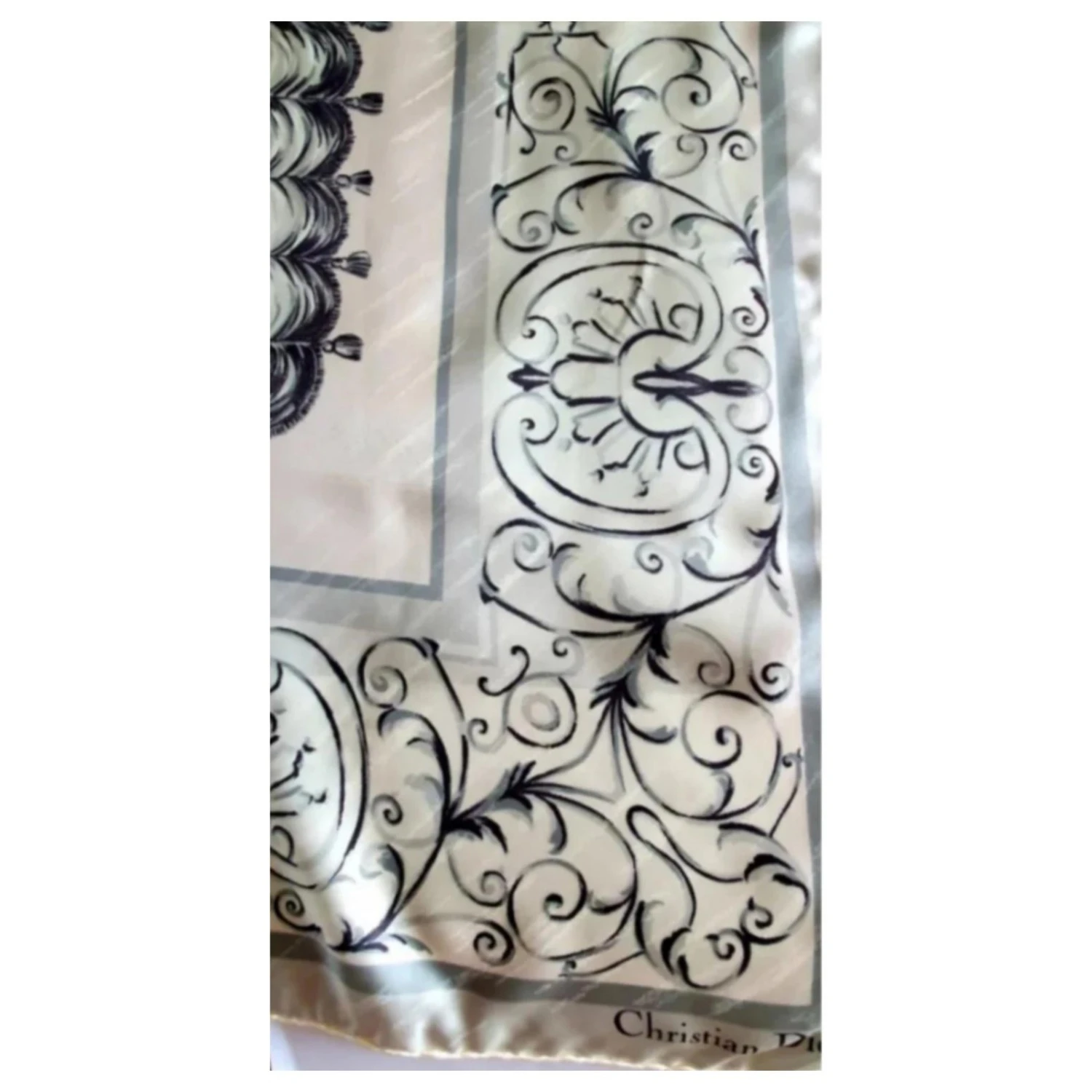 Carré de soie Christian Dior aux couleurs douces, entre le bleu/gris et le vert/gris.