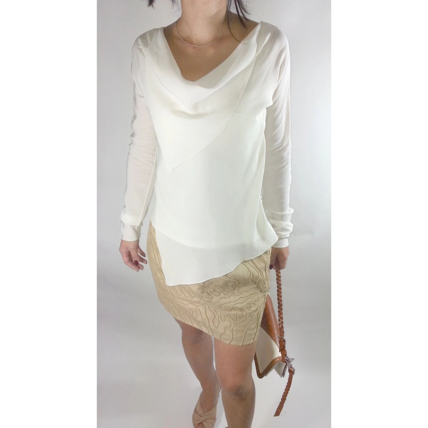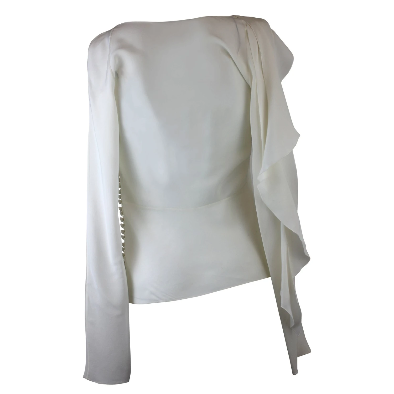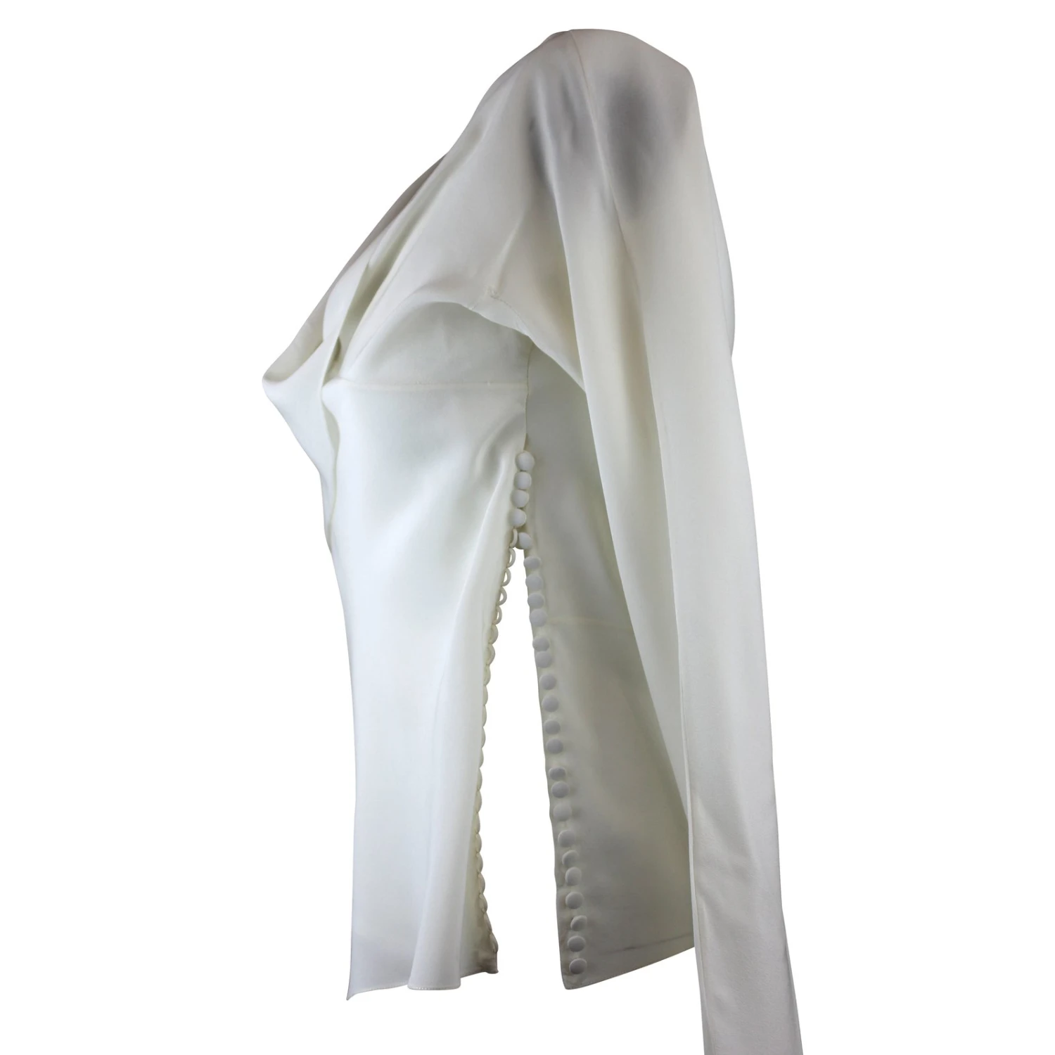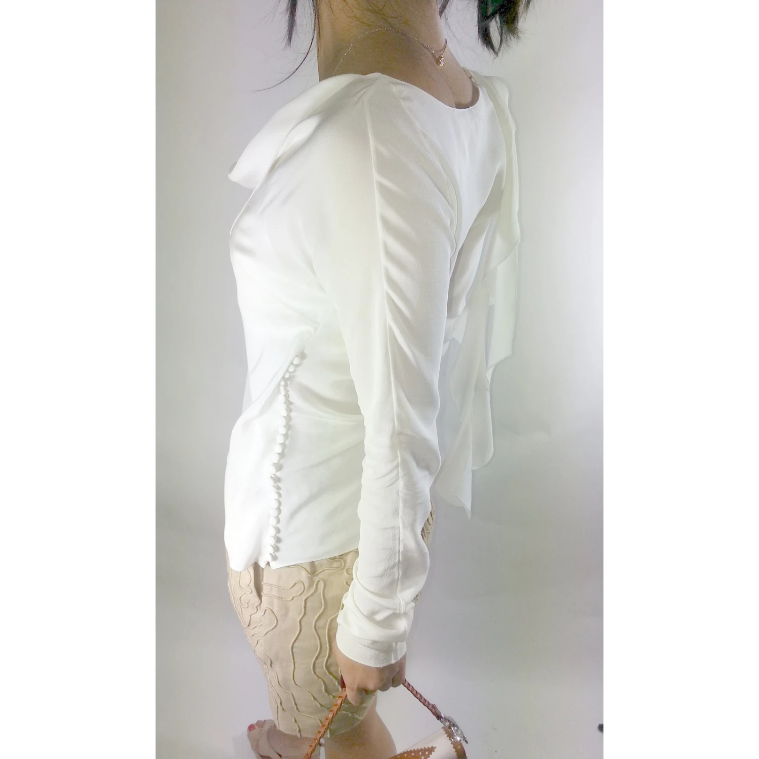 Magnifique top en soie avec boutonnage sur l’un des côtés couleur blanc écru.