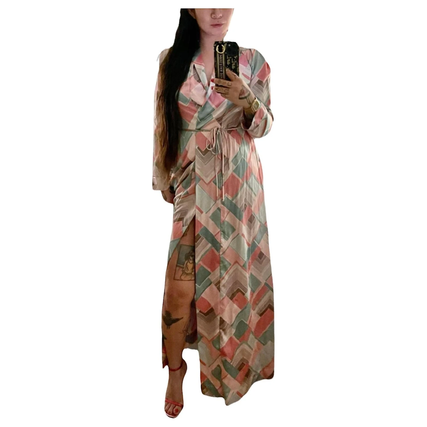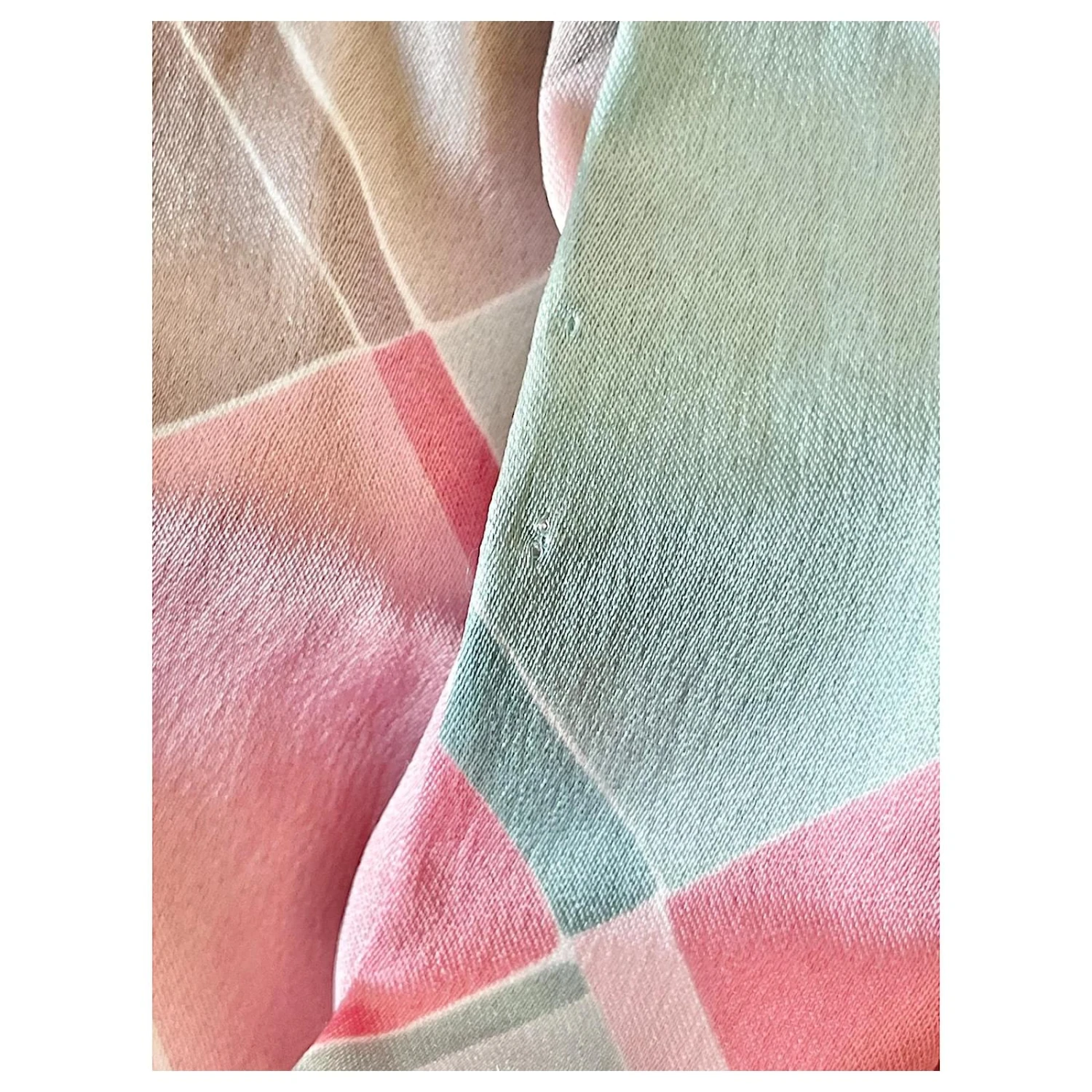 Superbe peignoir vintage en soie Dior de la fin 70s au début 80S. Combinaison absolument magnifique de vert pastel, Rose bébé, Couleur Beige, et couleurs fuchsia. Il a une cravate spaghetti autour de la taille et deux poches latérales. La robe globale est en très bon état vintage, moins quelques défauts dans plusieurs domaines tels que les coutures courantes et les rayures légères. J’ai pris autant de photos que possible pour montrer les défauts. Taille inconnue, mais ça va comme un S ou M moderne. J’ai également fourni une photo de moi le portant, et je suis 160cm de hauteur, et porter habituellement M ou L.