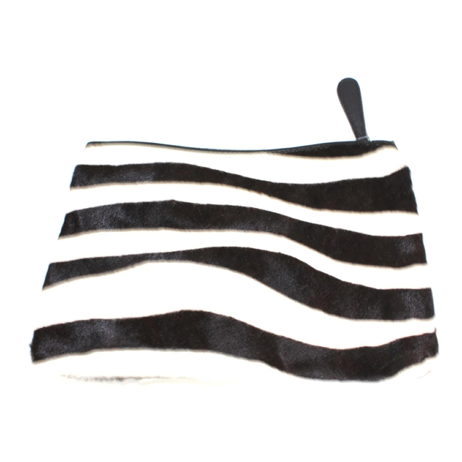 pochette en poulain effet zèbre, en 2 parties, une zippée et
