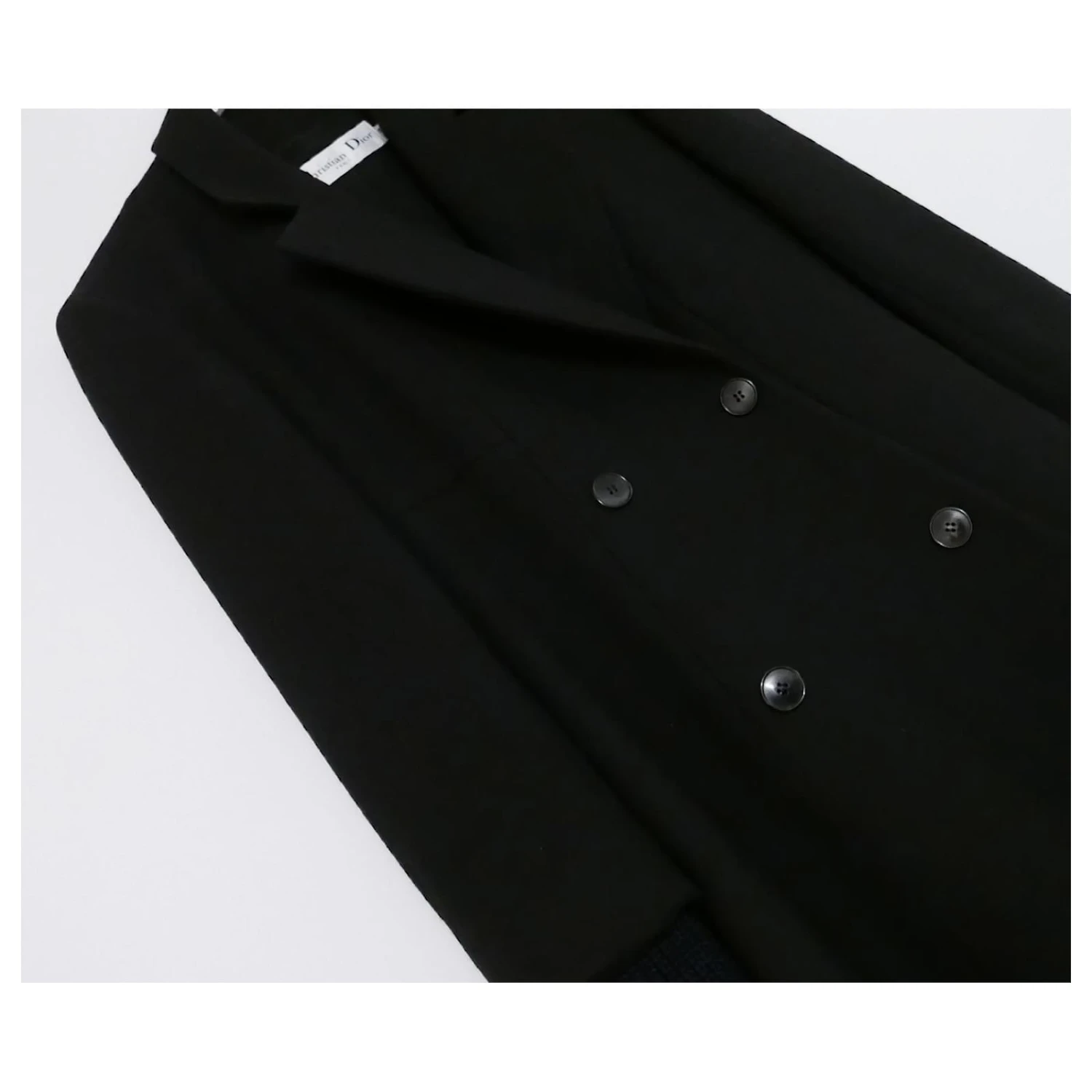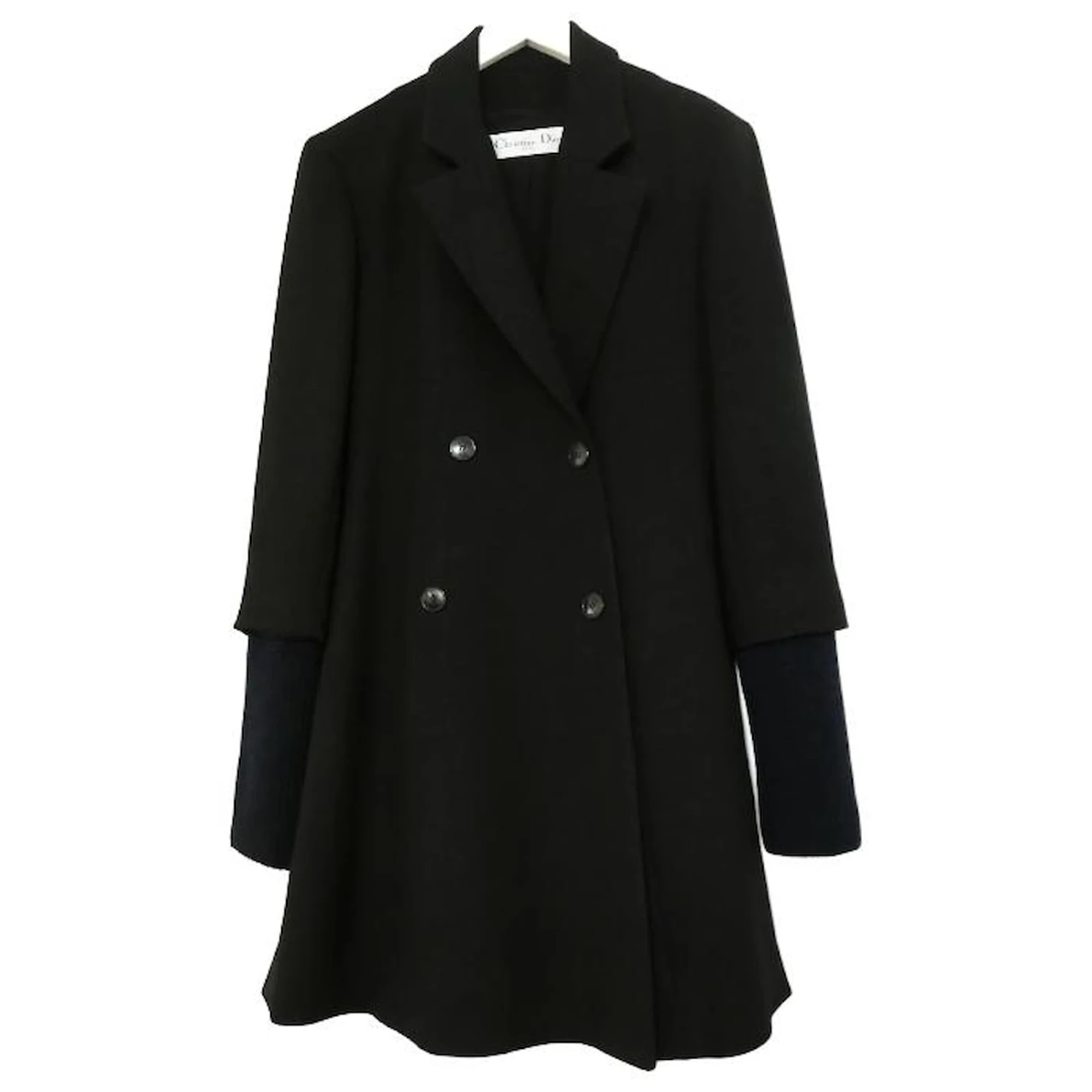 Christian Dior Pré-automne 2015 Manteau évasé En Laine Noire à Revers En Tricot