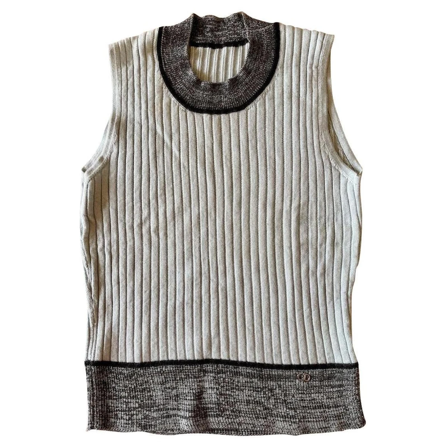 bel article en tres bel état. Fabriqué en italie, ce pull sans manche signé Christian DIOR (voir logo sur photo), ne possède plus l’étiquette de marque dans le cou,