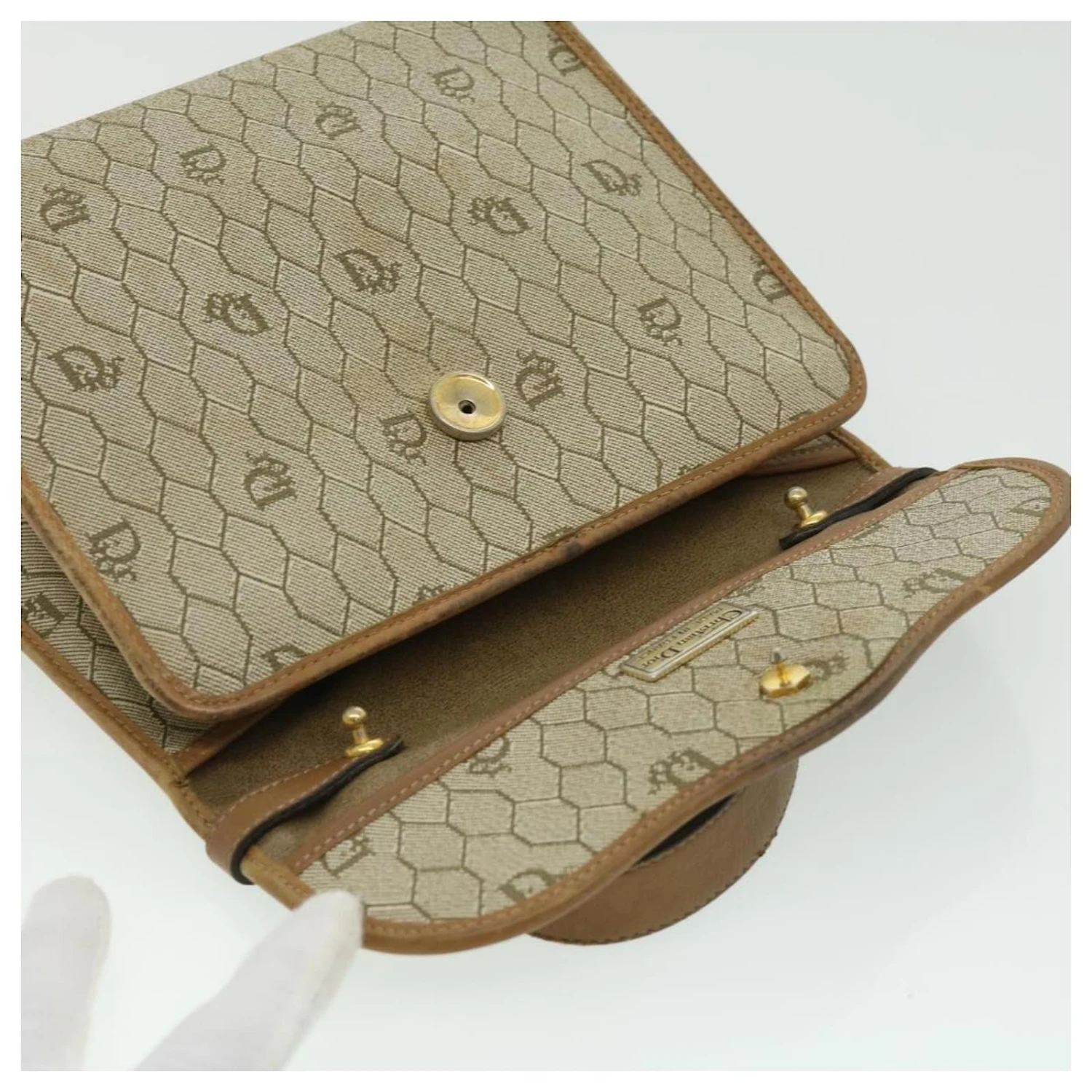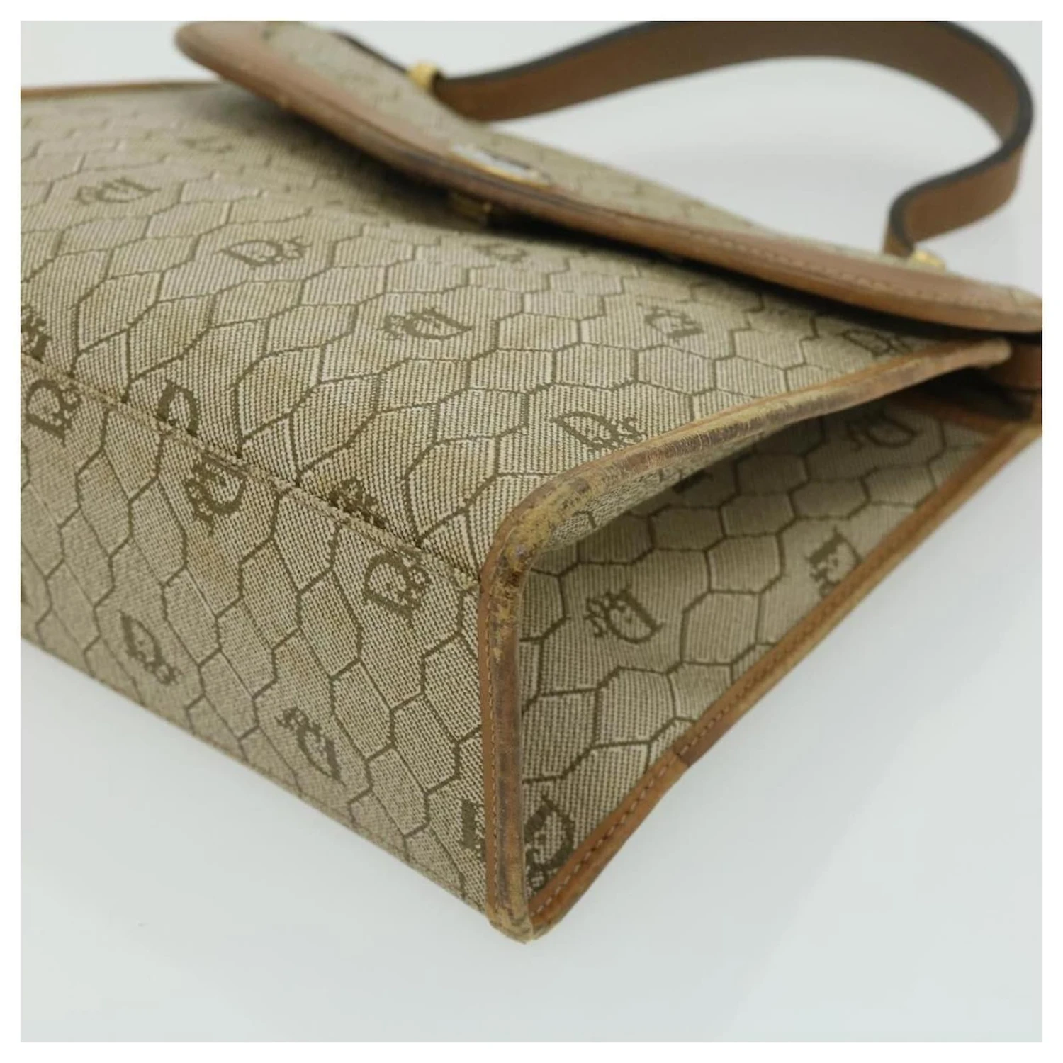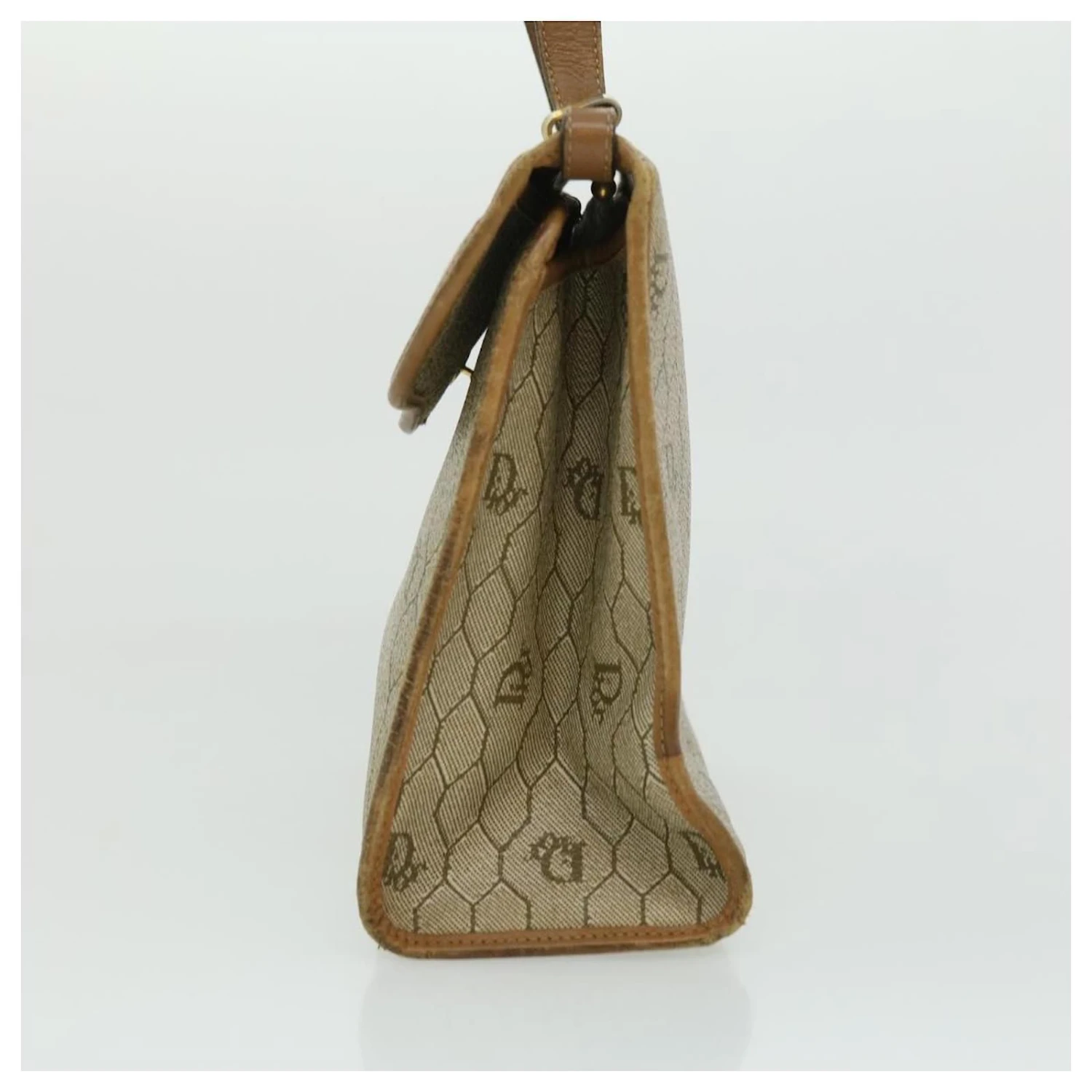 Christian Dior Sac à Main En Toile Nid D’abeille Beige Auth 31593