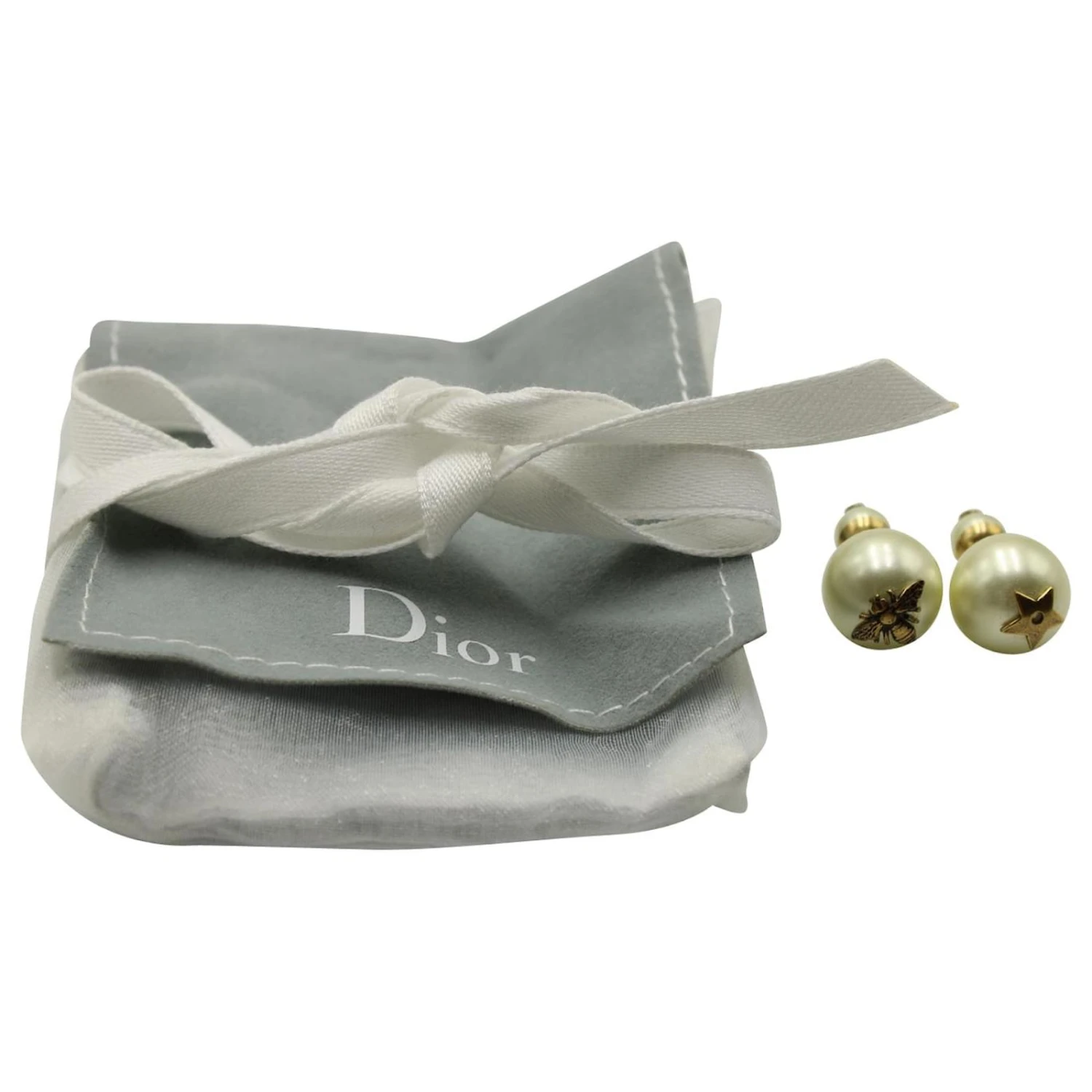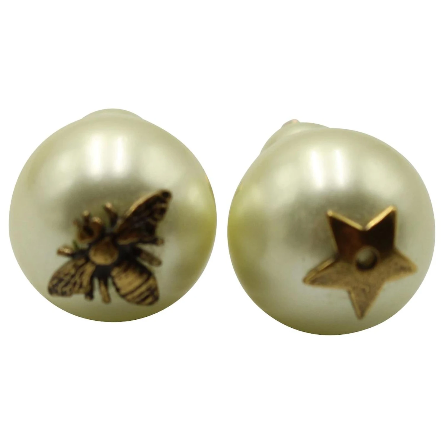 Christian Dior Tribales Clous d’oreilles Abeille et Étoile en Fausse Perle Blanche