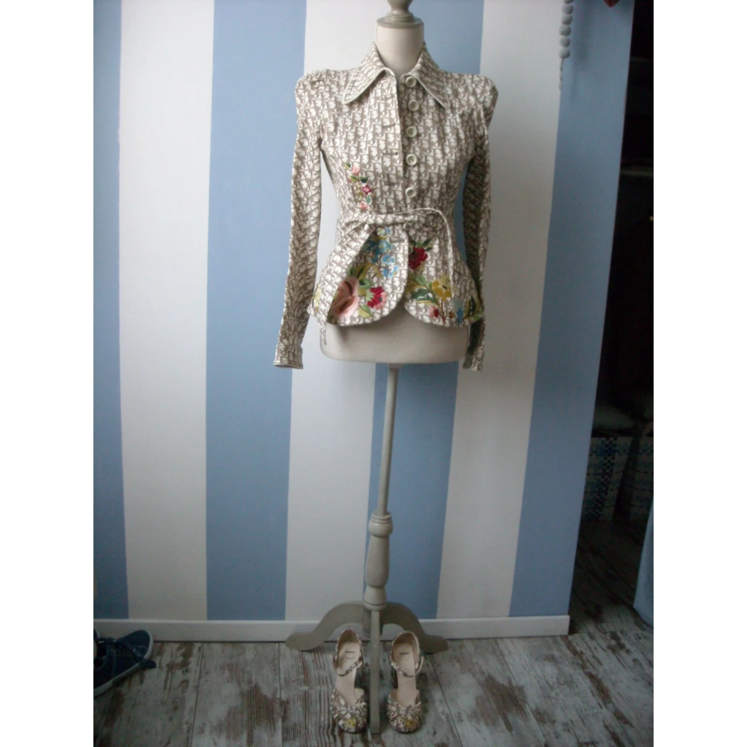 magnifique veste avec fleurs brodées fermeture boutons ceinture à la taille