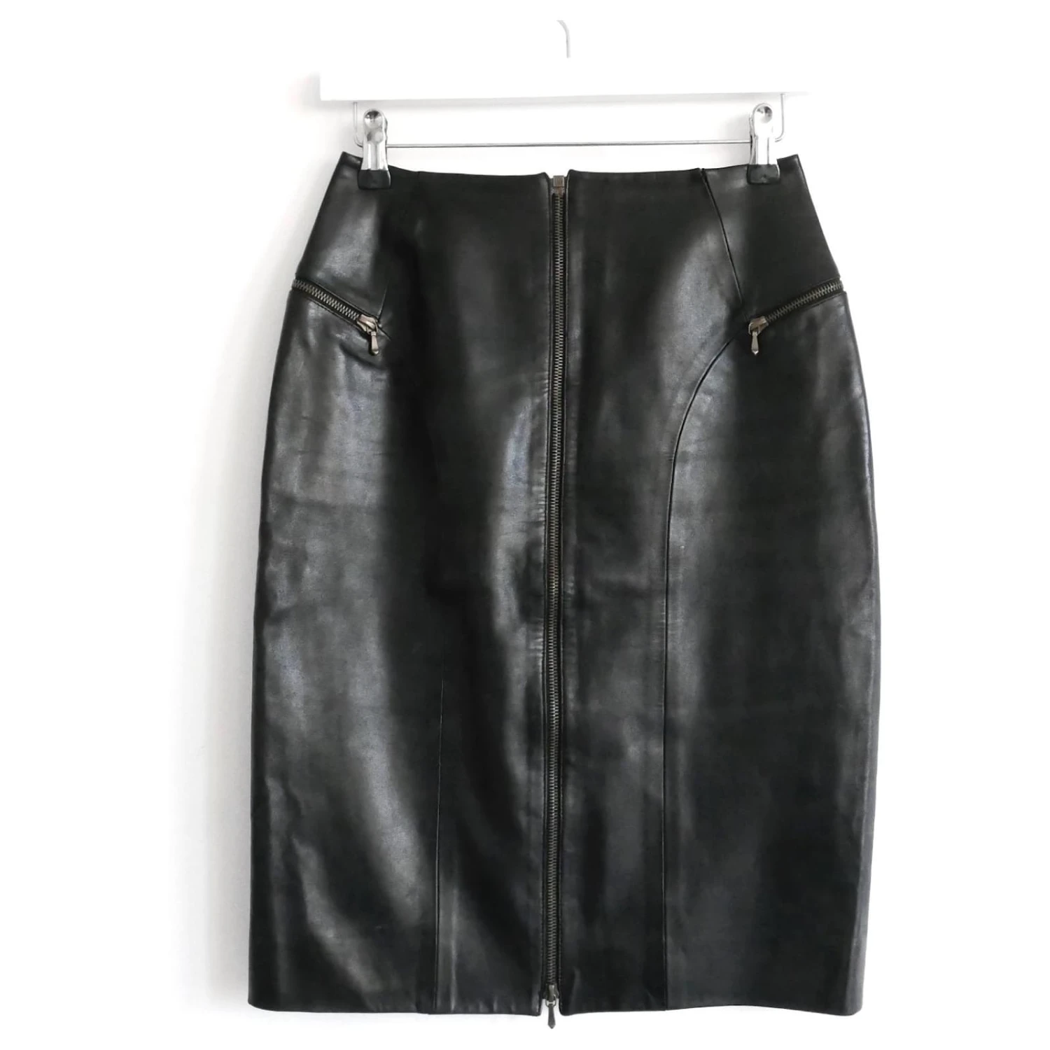 Christian Dior X Galliano AW00 Jupe Crayon Zippée En Cuir Noir