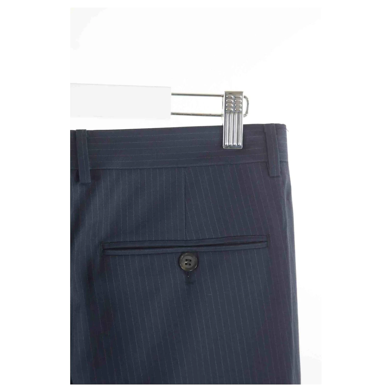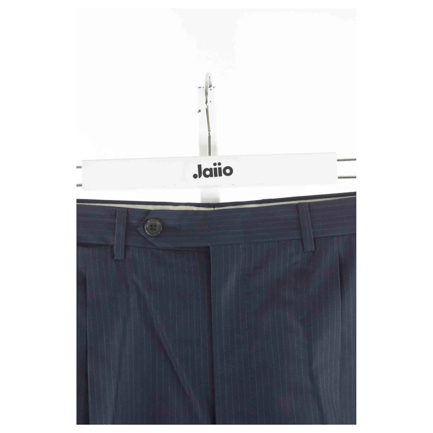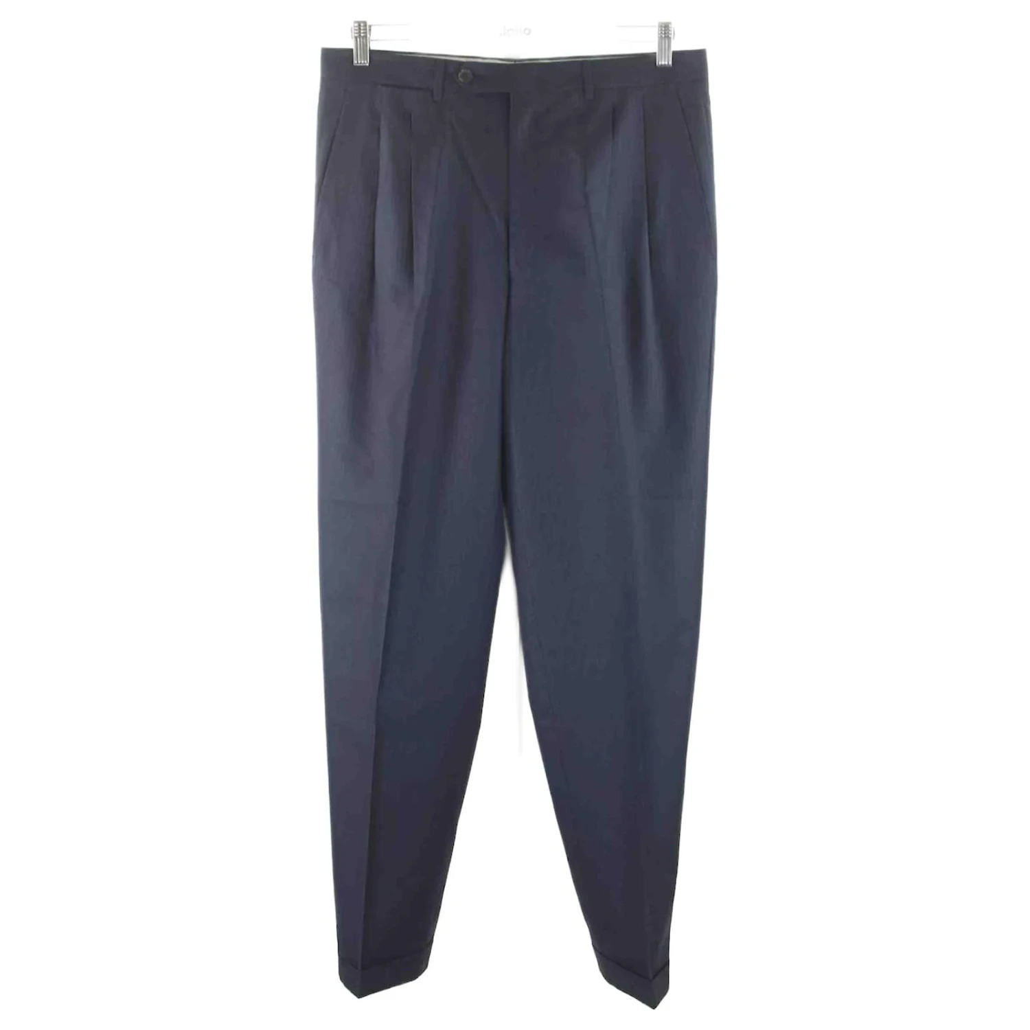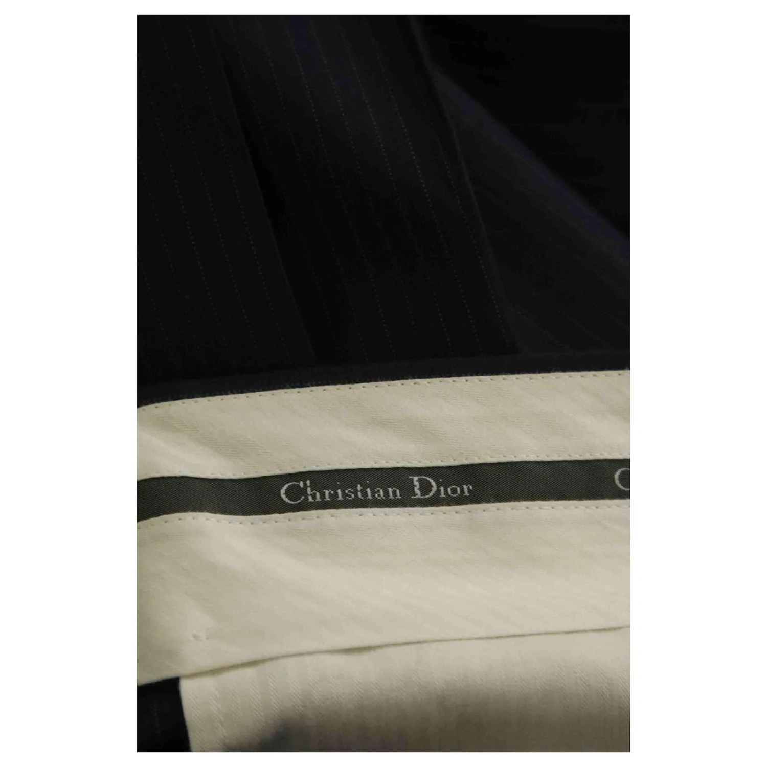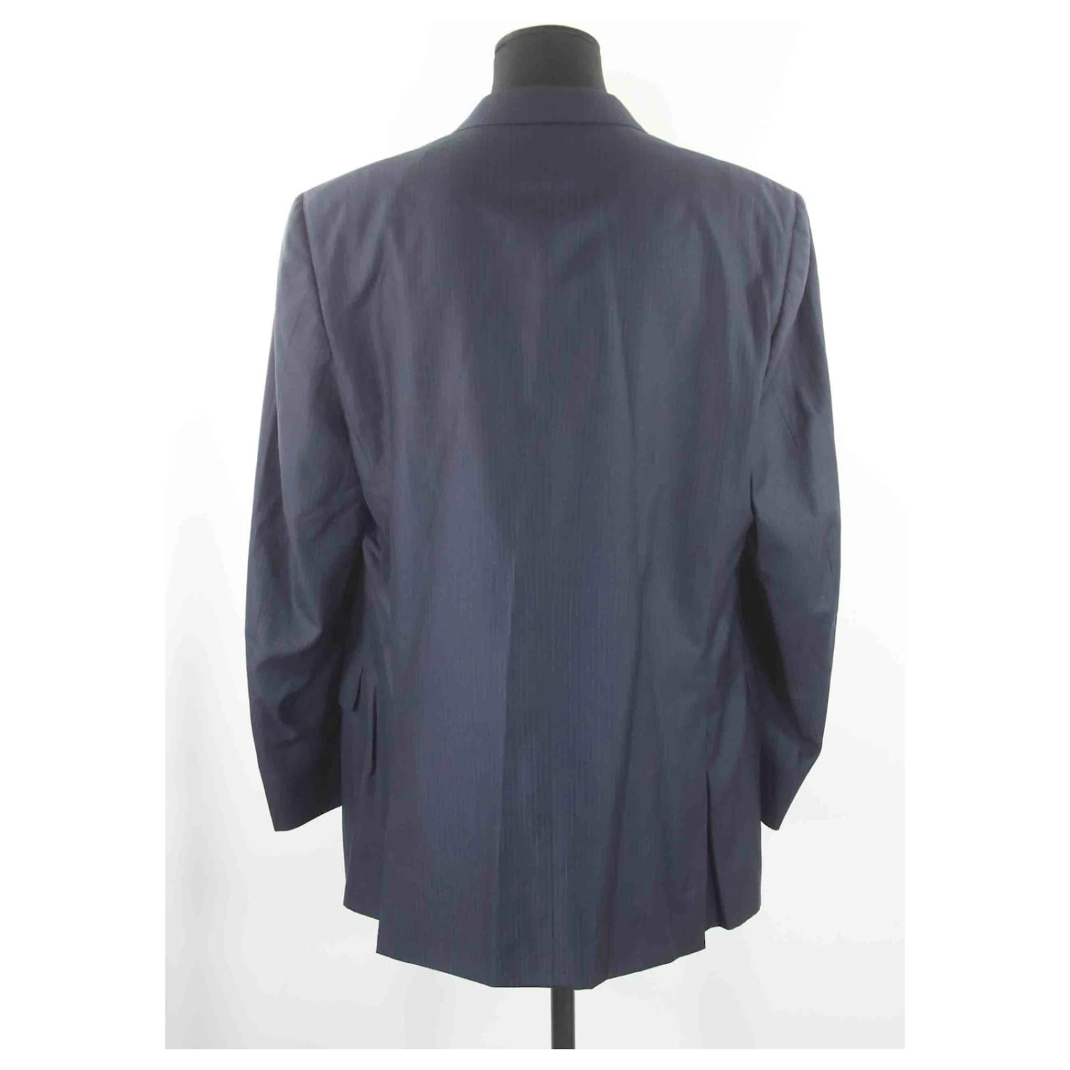 Costume – Dior – Longueur : 93cm – Épaules : 48cm – Aisselles : 52cm – Longueur des manches : 62cm – Pantalon assorti – Traces d’usures à l’intérieur de la veste et du pantalon – Non visible porté – Pantalon : largeur taille 41cm – Fourche 29cm – Longueur 105cm – Bleu – Taille XXL – 60% Laine 40% Soie – Bon État – Référence 189093