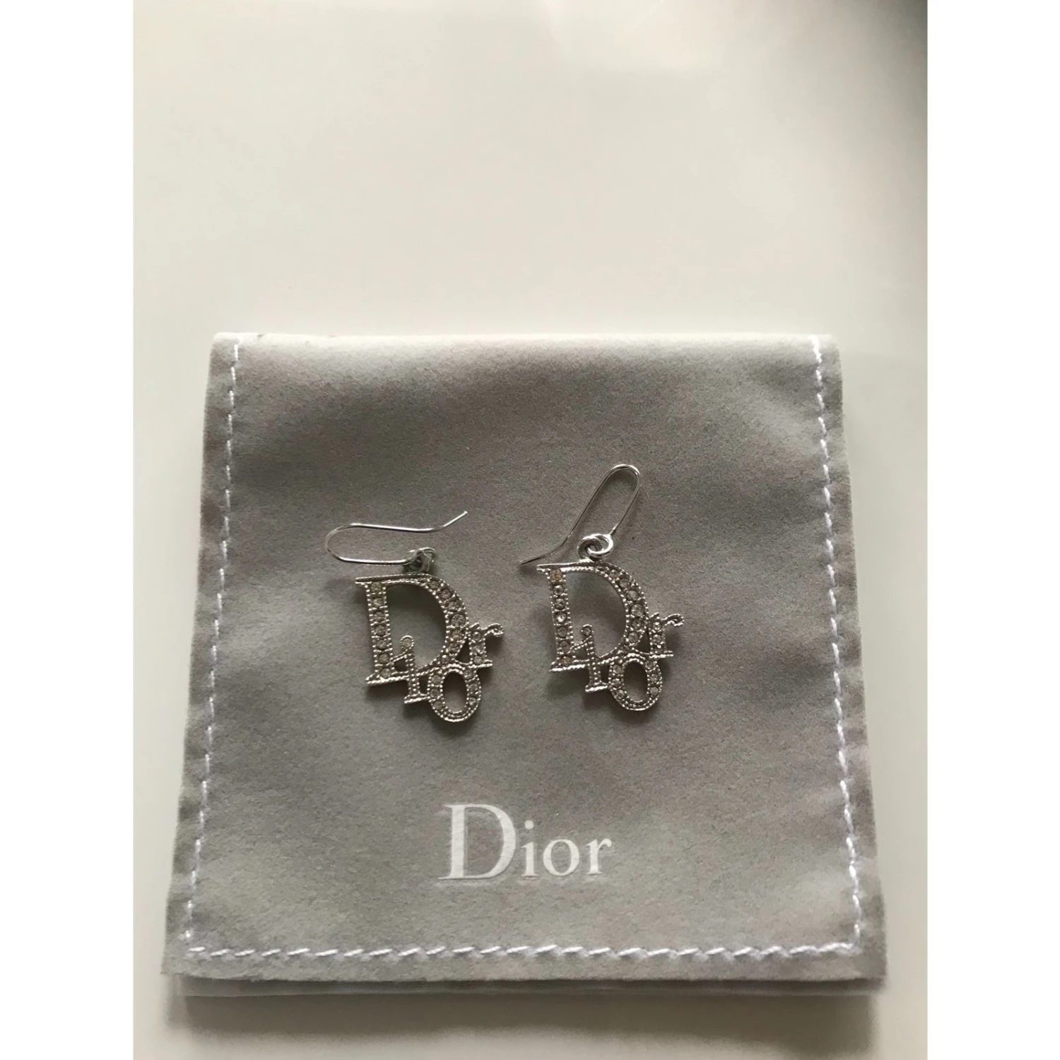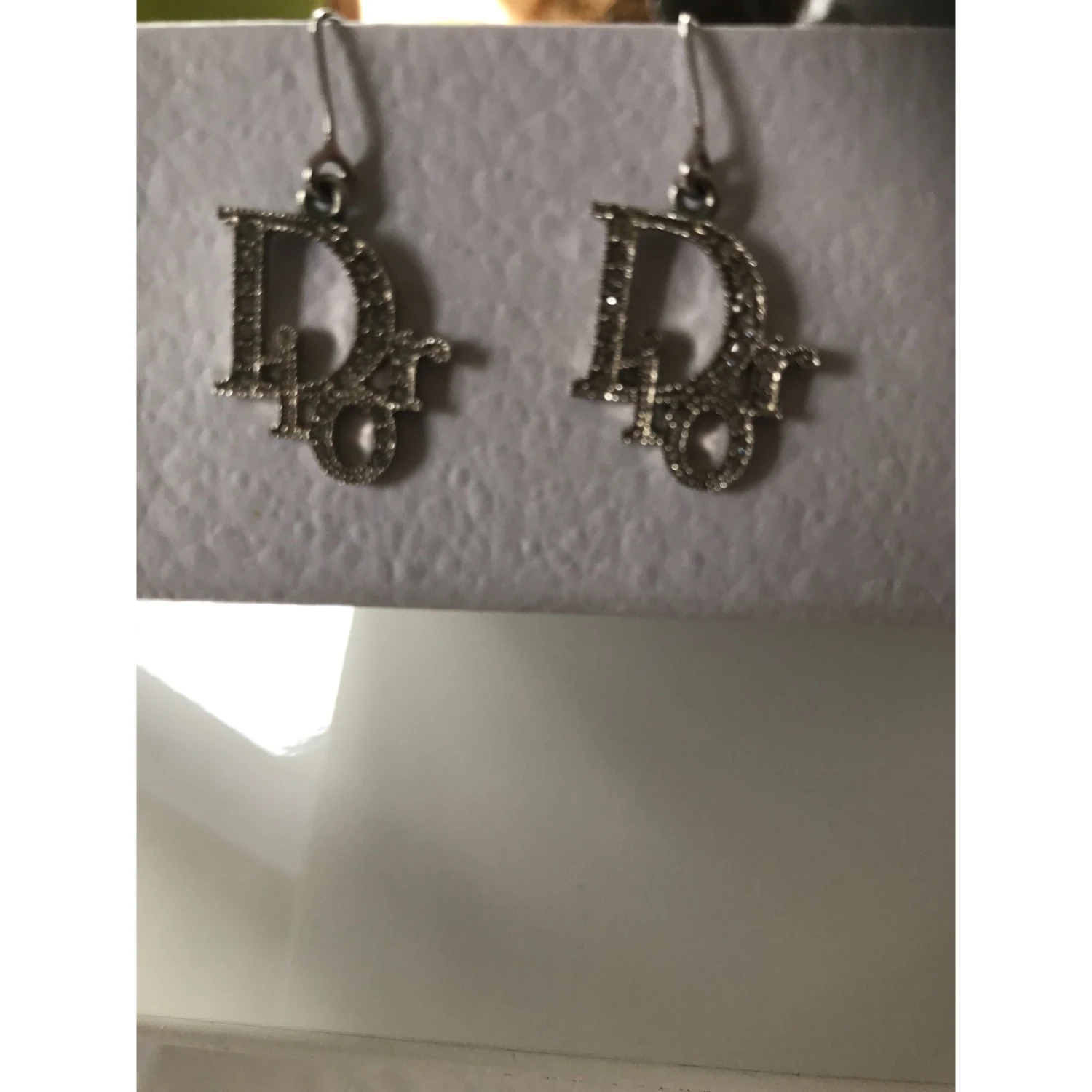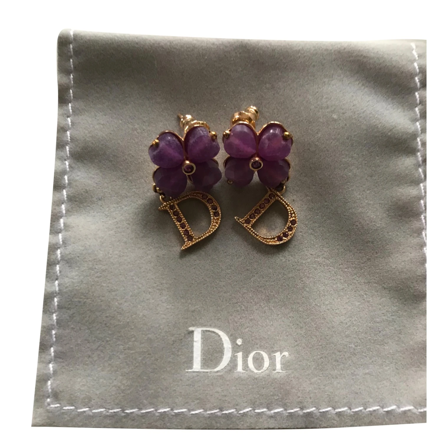 2 pairs de B O Dior. L’une argentée avec cristaux blancs Swarovski et l’autre dorée avec pierres améthyste et cristaux Swarovski parmes.