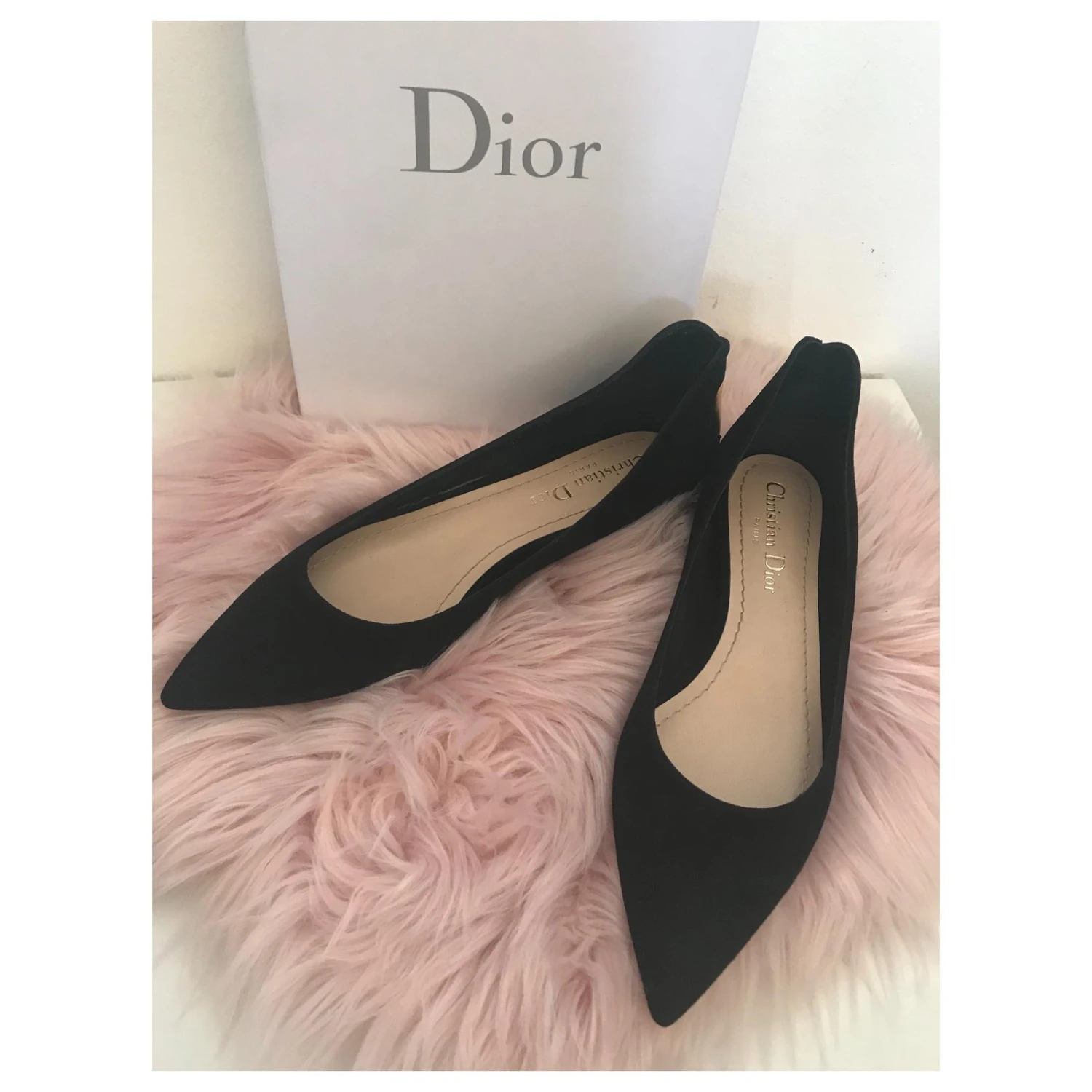 Ballerine Coeur en daim noir. Bout pointu avec un coeur en or dans le dos . Nouveau avec la boîte