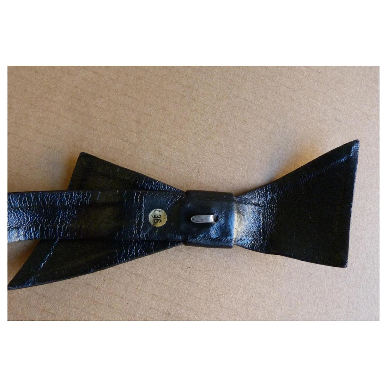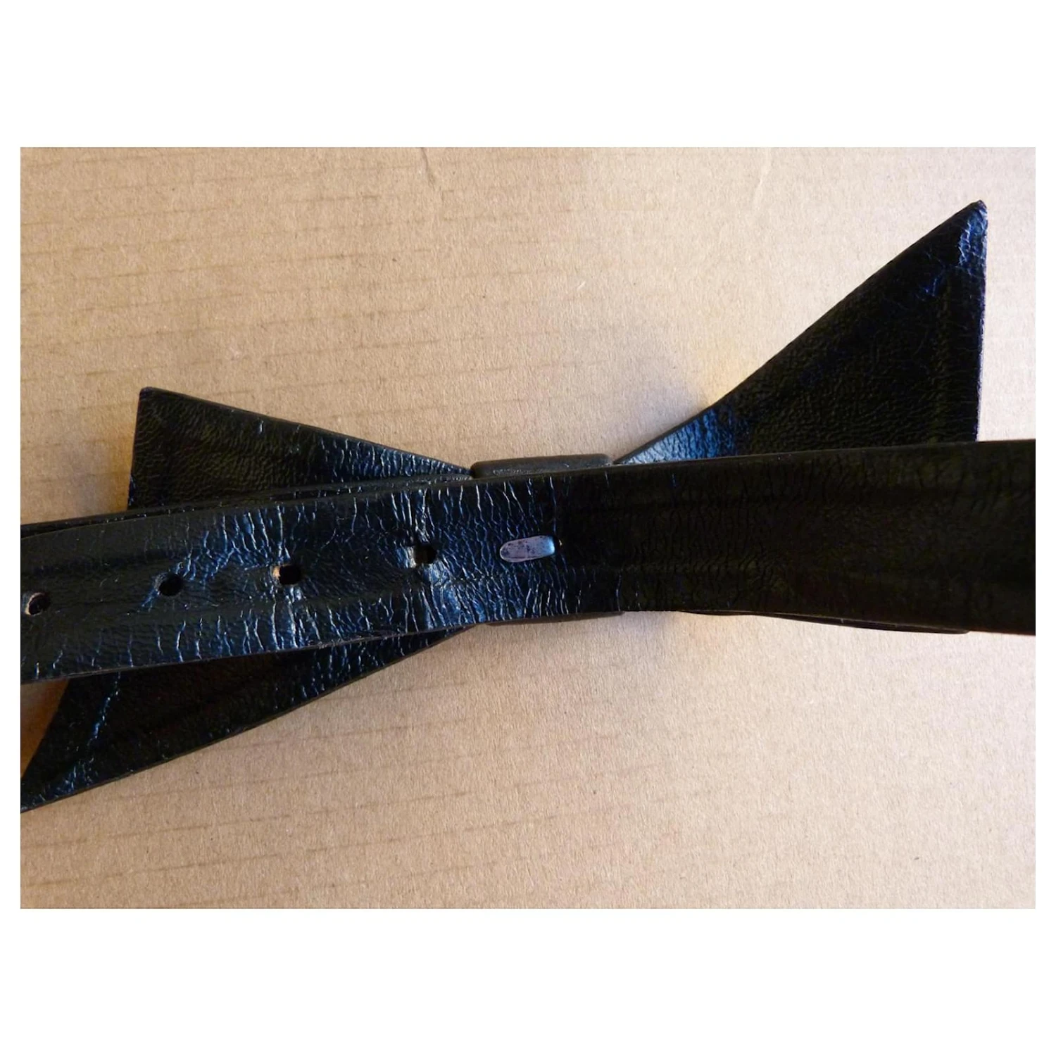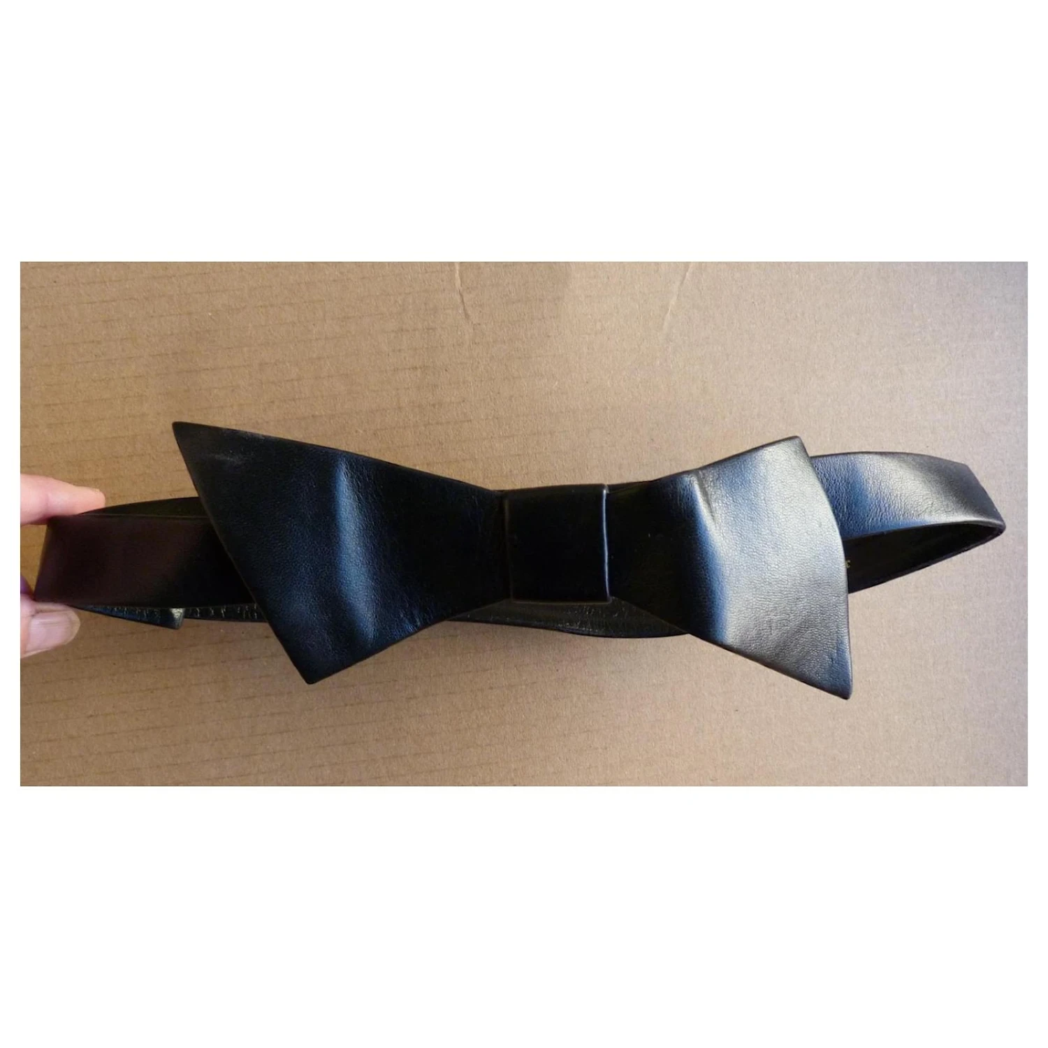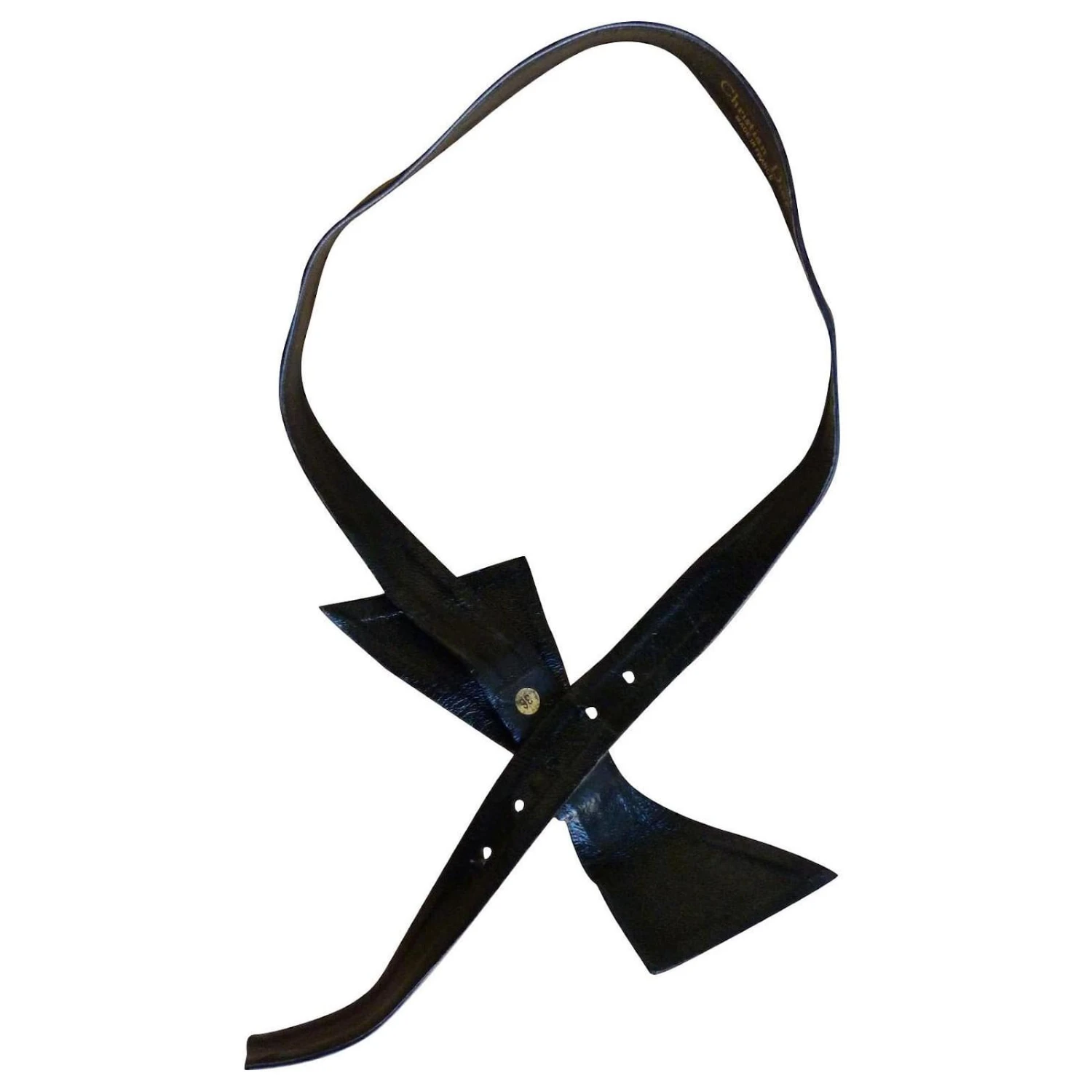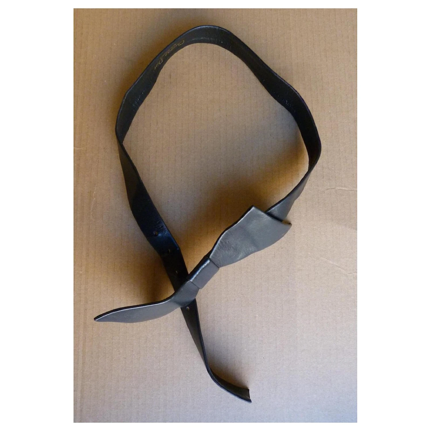 ceinture cuir noir de la marque DIOR – parfaite pour finir un style vintage et marquée sa taille sur une robe, une veste ou un pull – gros noeud en cuir noir avec au dos un fermoir crochet métal – 5 trous de resserrage