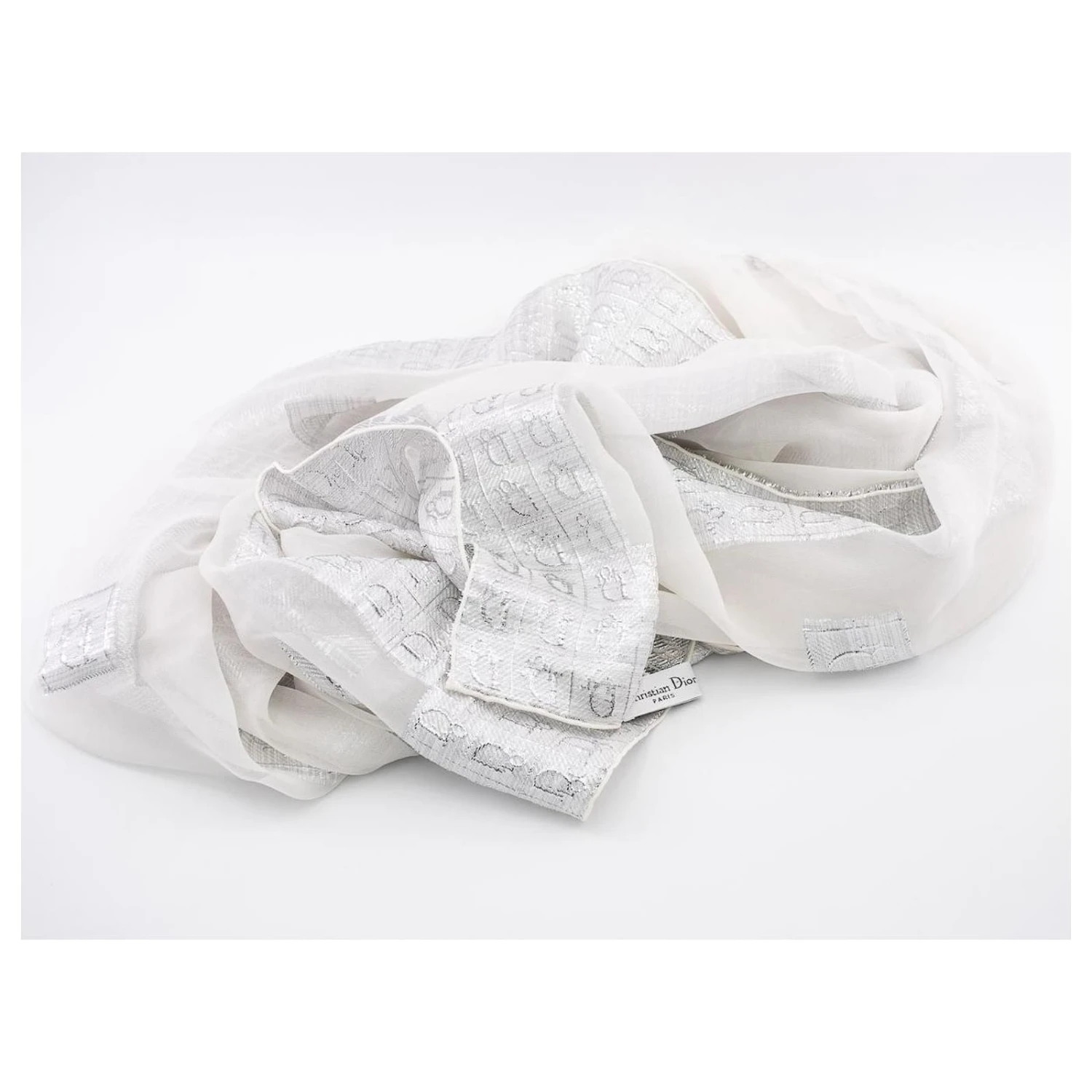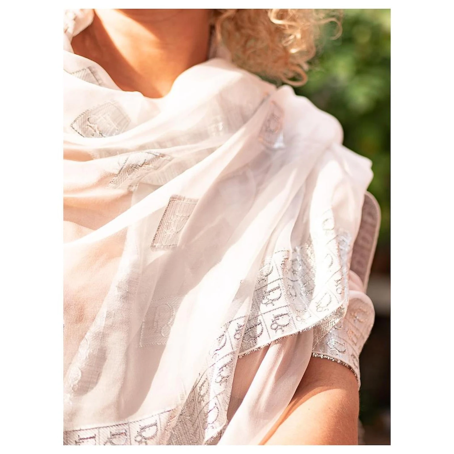 Étole Dior en mousseline de soie avec sigles brodés en fils d’argent