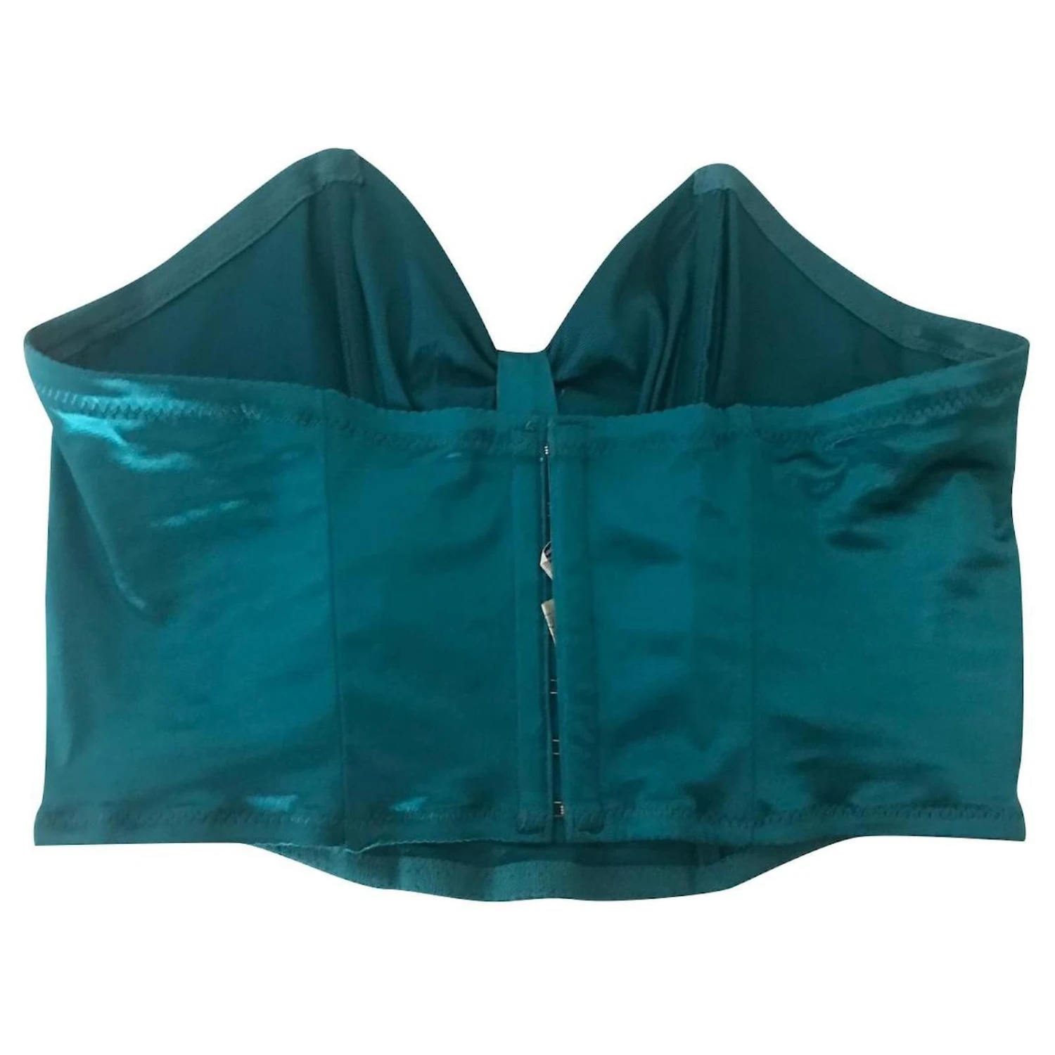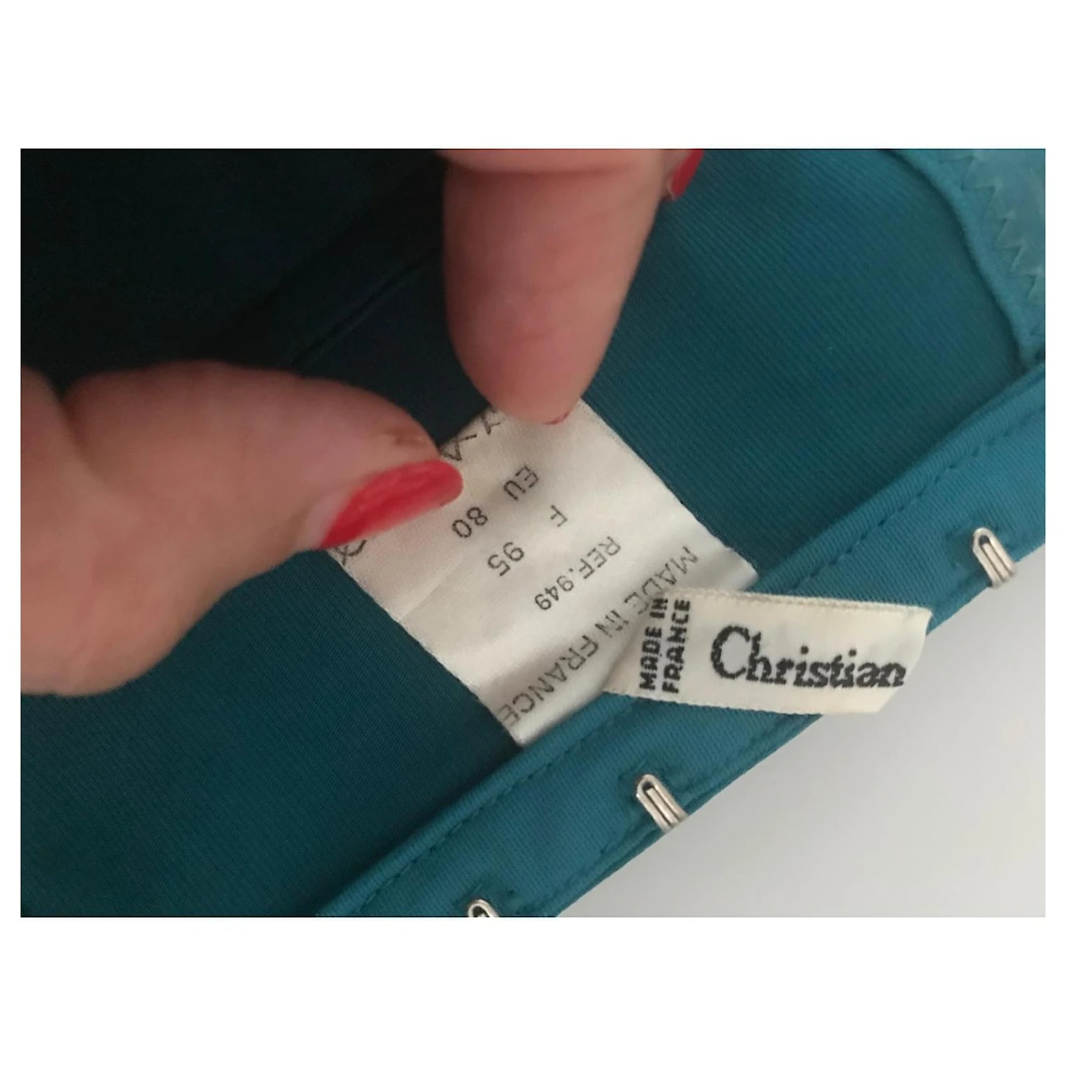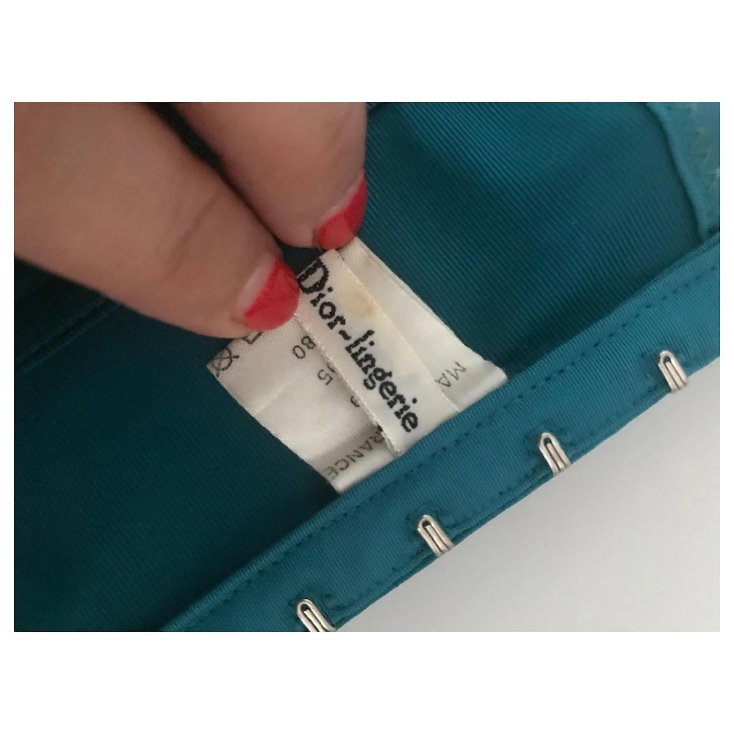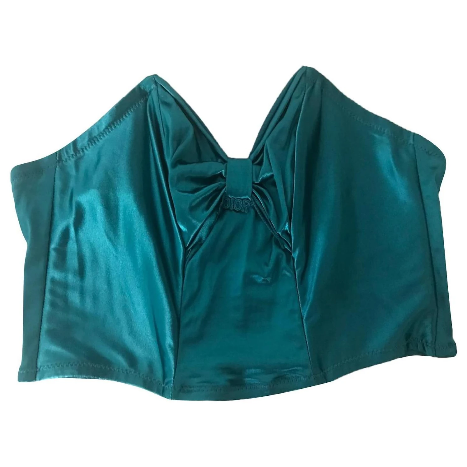 Magnifique bustier dior. Jolie couleur bleu canard. Matière satiné. Comme neuf. Convient à un 36.