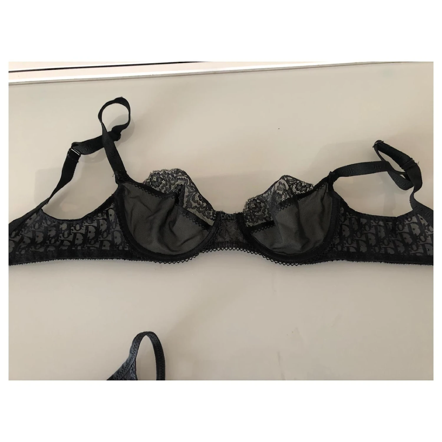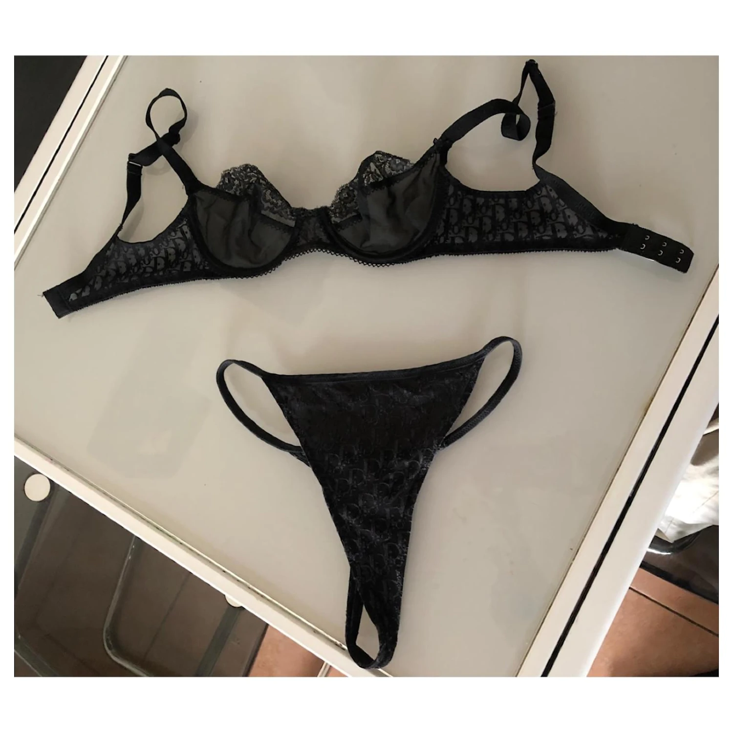 Soutien gorge et string dior motif monogramme. Taille 80B et 38. Modèle rare et recherché.