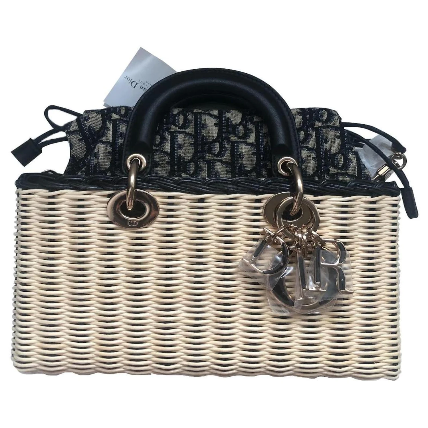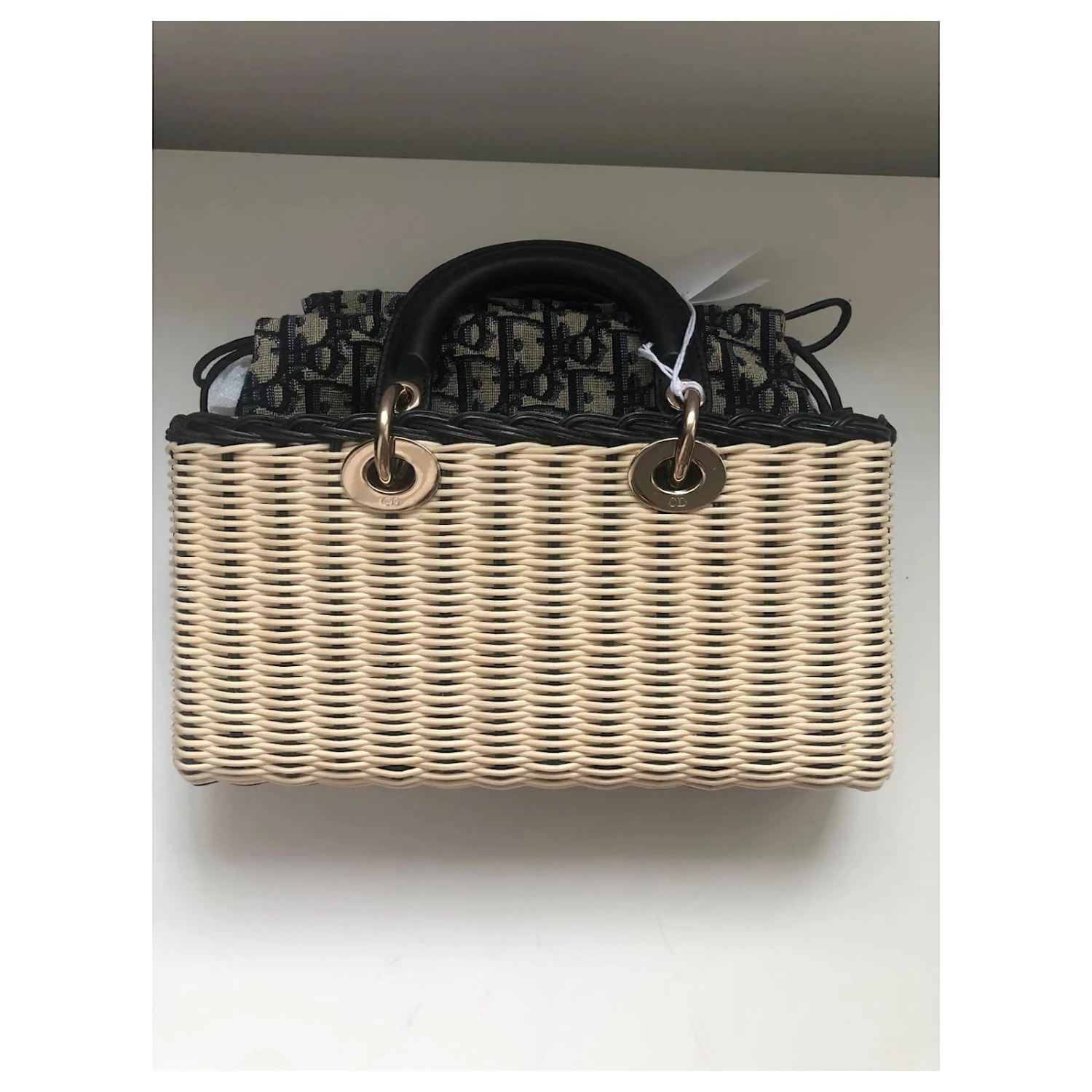 Osier naturel et noir et toile jacquard Dior Oblique bleu