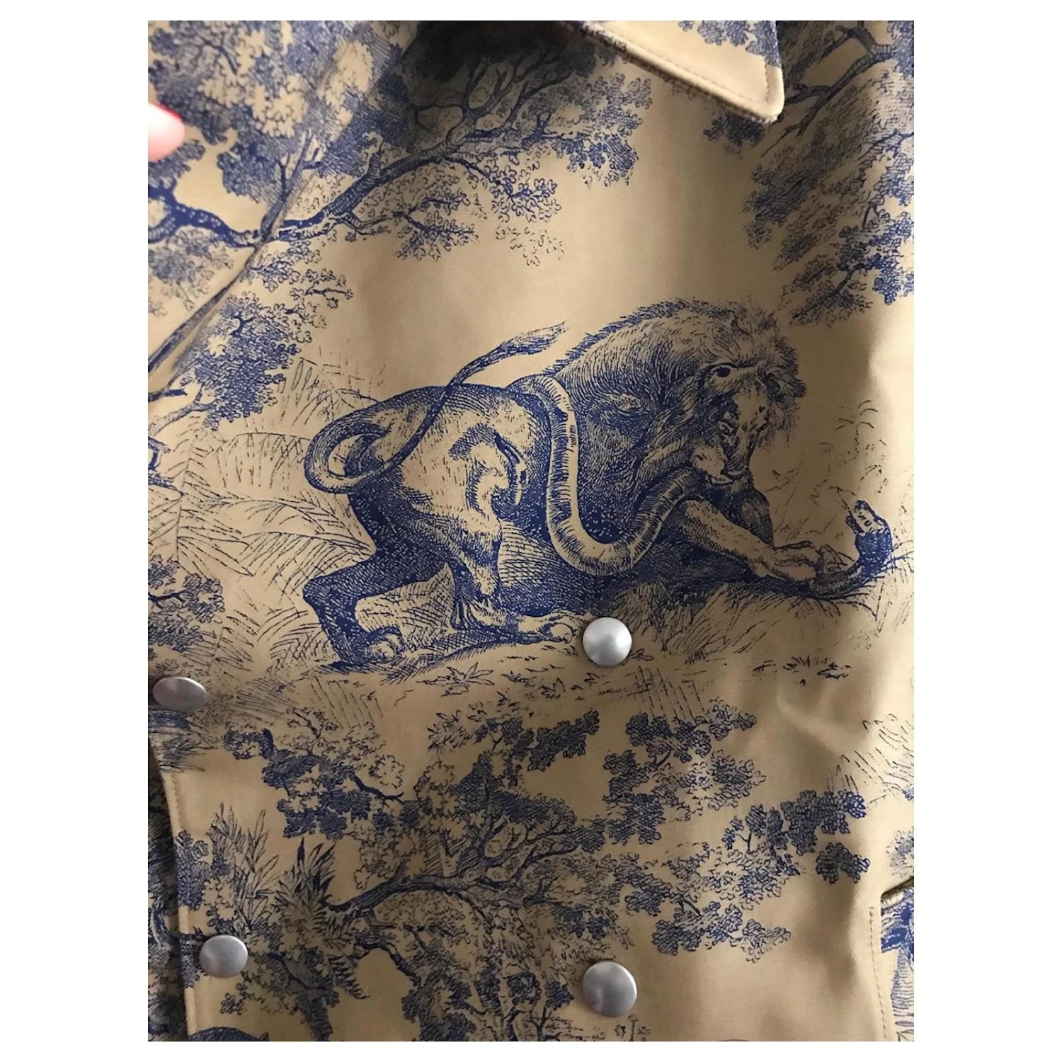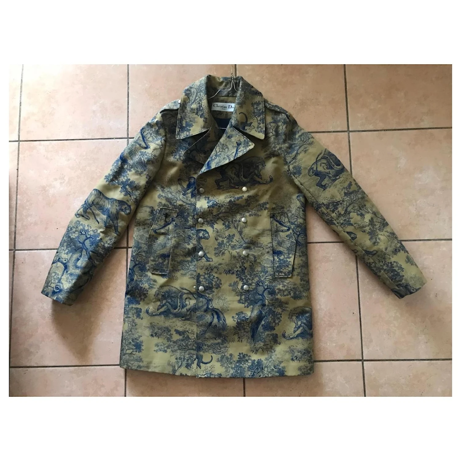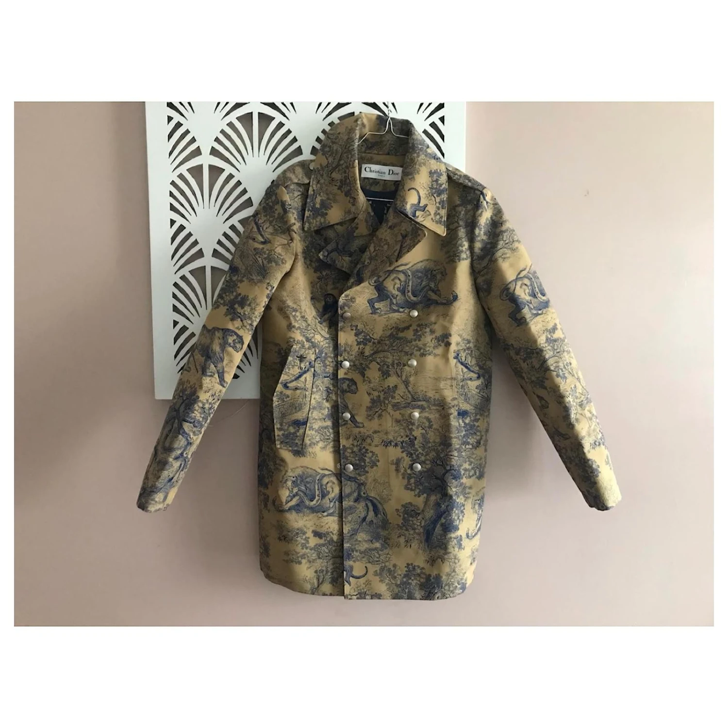 Magnifique manteau en toile de jouy avec sa doublure motif monogramme Dior. Comme neuve. En excellent état. Une pièce magnifique.Taille 36.