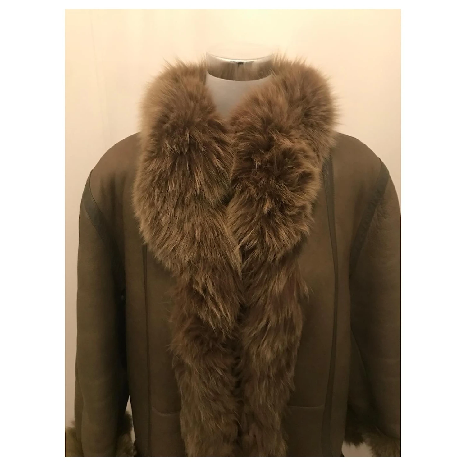 Magnifique manteau en fourrure dior. Col et contour en vison. En très bonne état. Juste quelques minuscules marques discrète à l’arrière. Jolie couleur kaki. Convient à un 40.