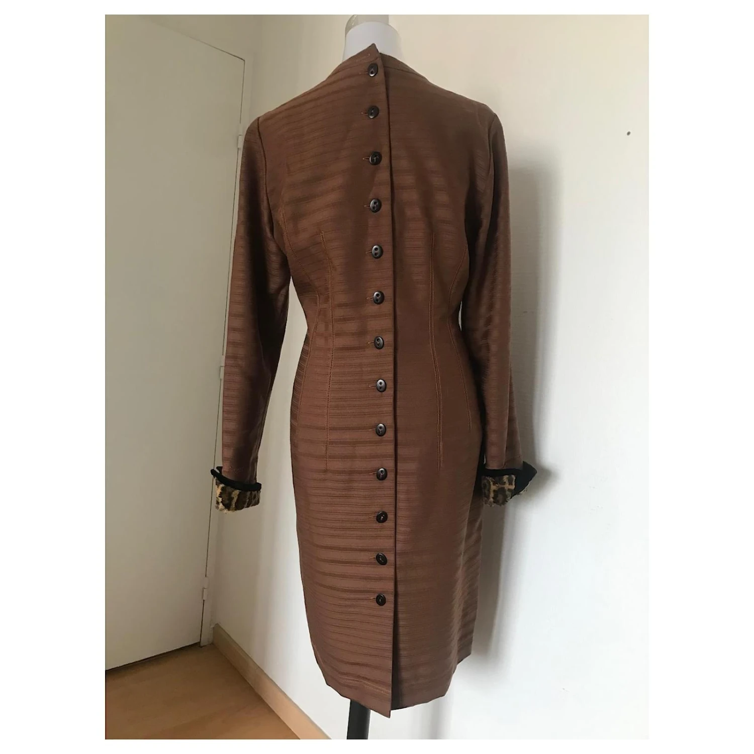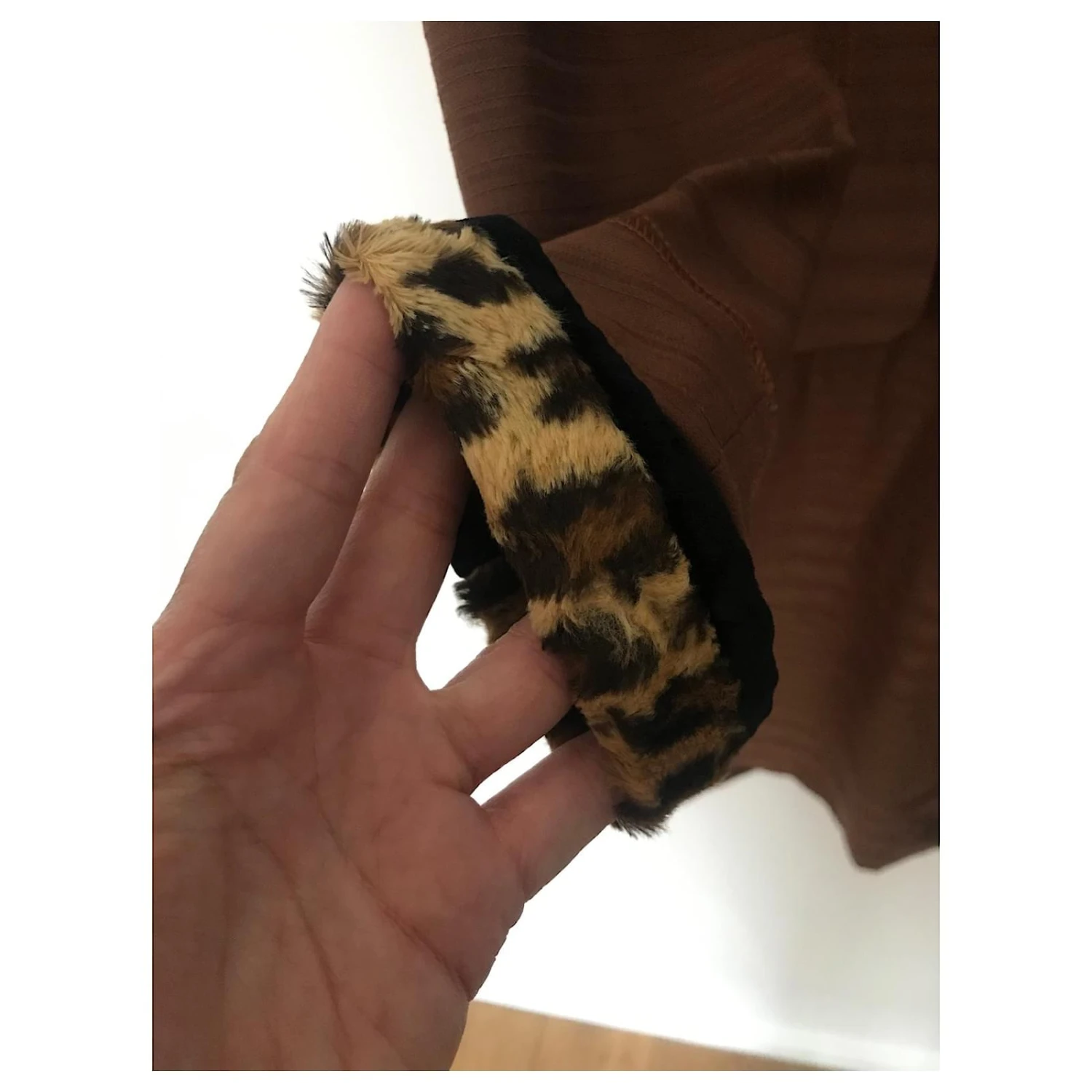 Très jolie robe boutonné à l’arrière. Manches avec un revers en fourrure synthétique motifs léopard. Convient à un 40. Très bonne état. Il manque juste un bouton.