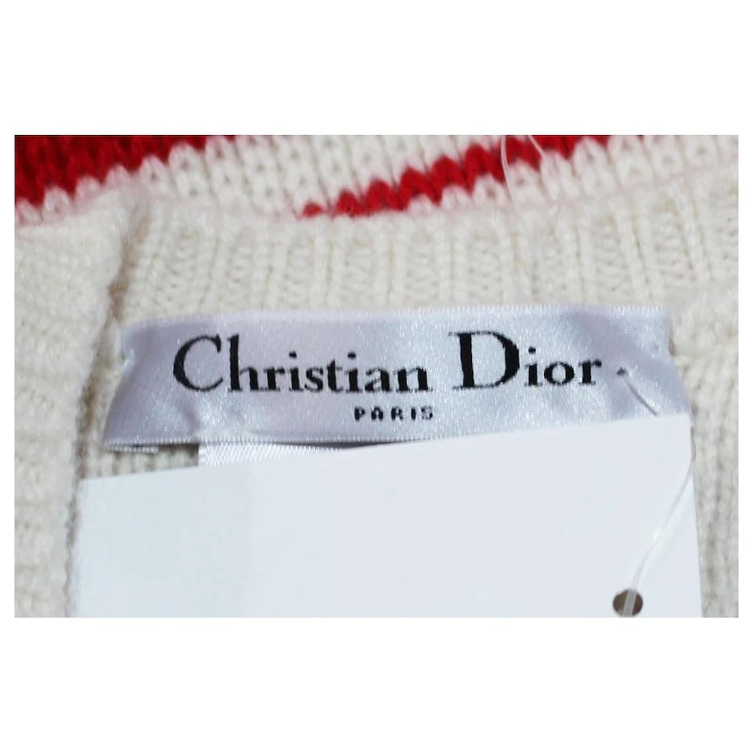 PULL DEBAEDEUR DIOR EN CACHEMIRE A RAYURES ECRU ROUGE