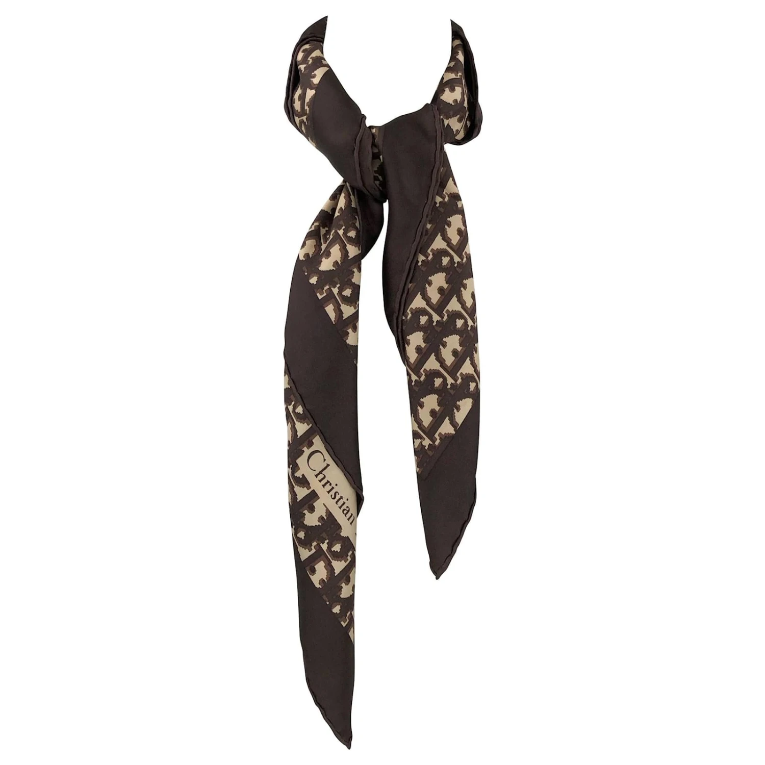 Foulard Vintage Dior En Monogramme Marron