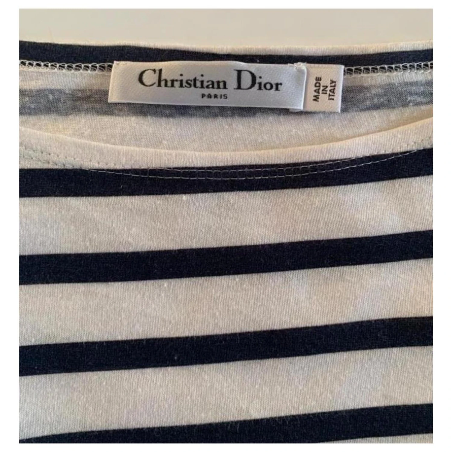 T-shirt rayé blanc-bleu à manches longues en coton et lin « J’adior Mykonos » La collection capsule Dioriviera été 2019 créée par la directrice artistique des collections féminines de Christian Dior Maria Grazia Chiuri. Sold out. Vendu exclusivement à la boutique éphémère (15 juin à 15 oct. 2019) à Nammos Shopping Village à Mykonos. Taille L (convient également à un M). Composition : 86% Coton, 14% Lin. Dimensions : L 61cm, niv. poitrine 45cm. Fabriqué en Italie. Quasi-neuf, porté une seule fois, livré avec son étiquette.