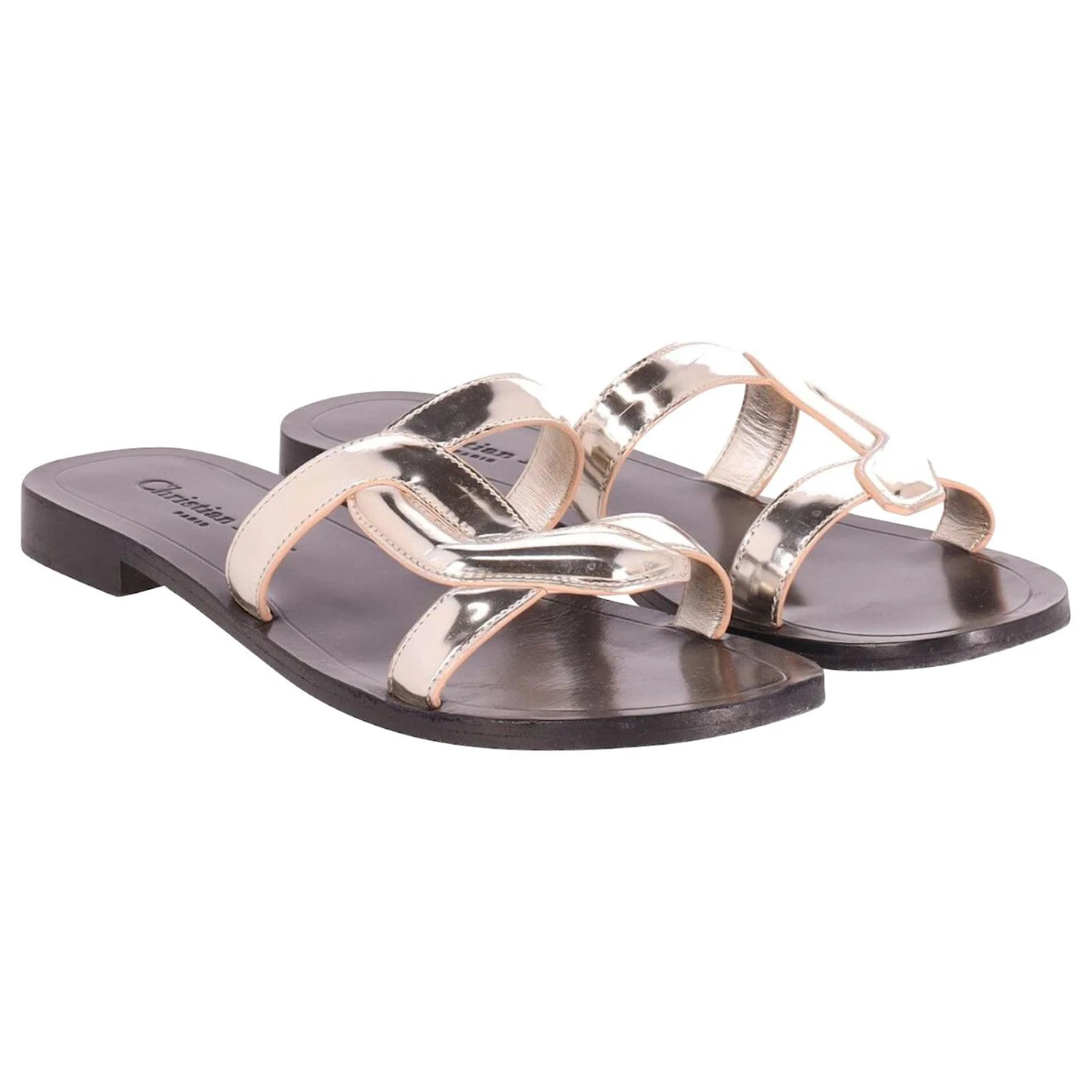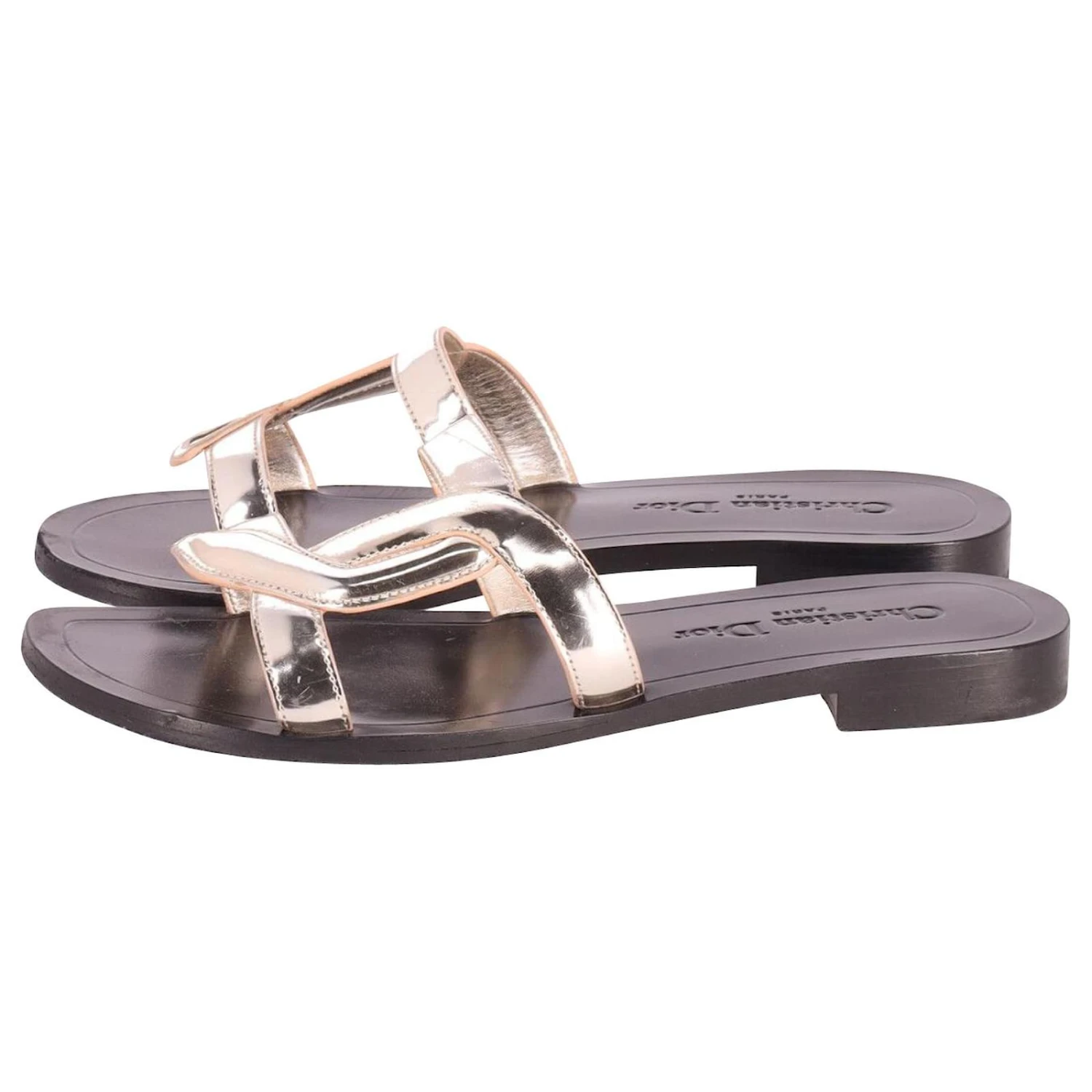 Sandales à enfiler Christian Dior en cuir argenté