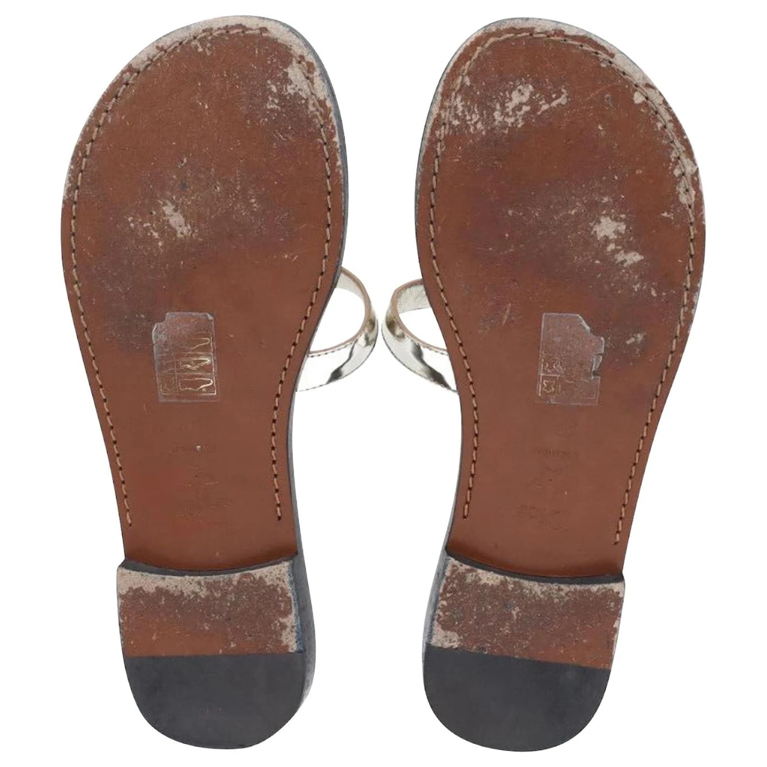 Signe d’usure : éraflures sur les semelles, griffures de cuir sur les bretelles