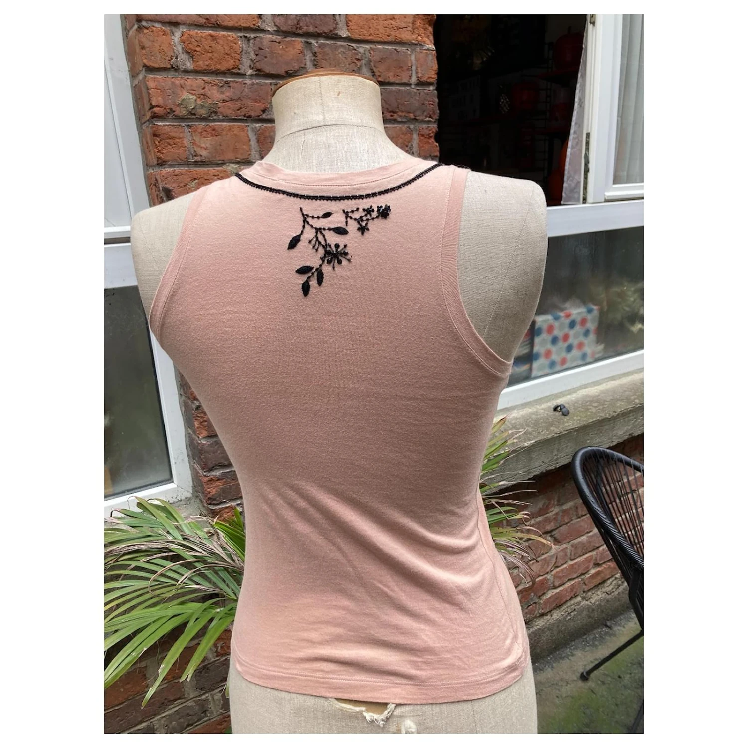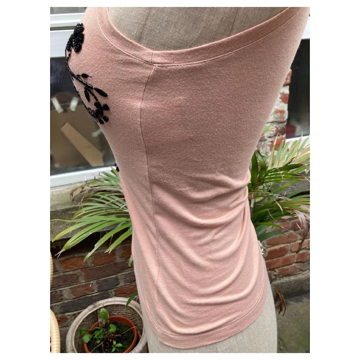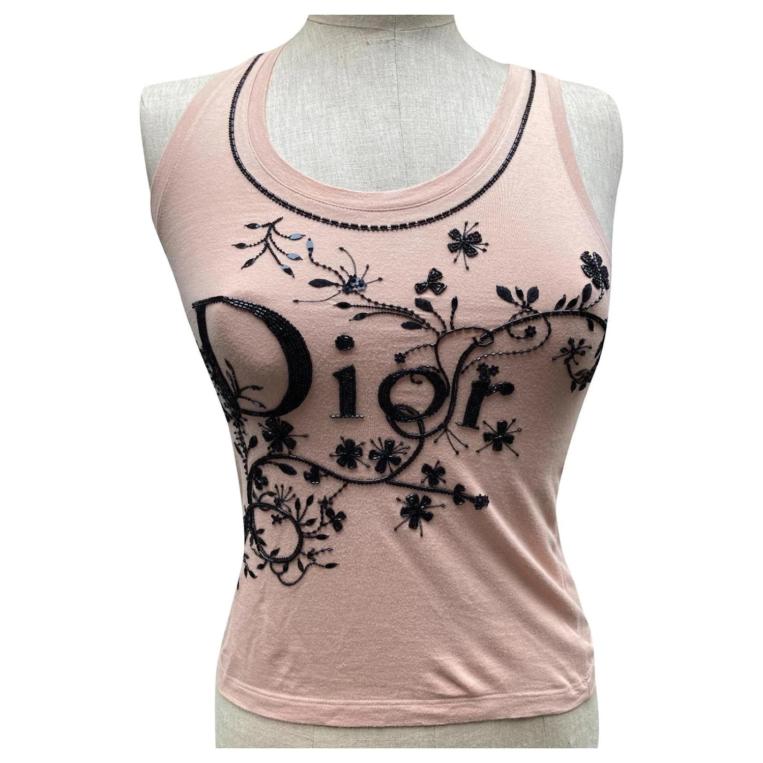 Sublime débardeur Dior beige / rosé avec Dior et fleurs perlés (verre et PVC avec de la soie) le débardeur est en coton.
