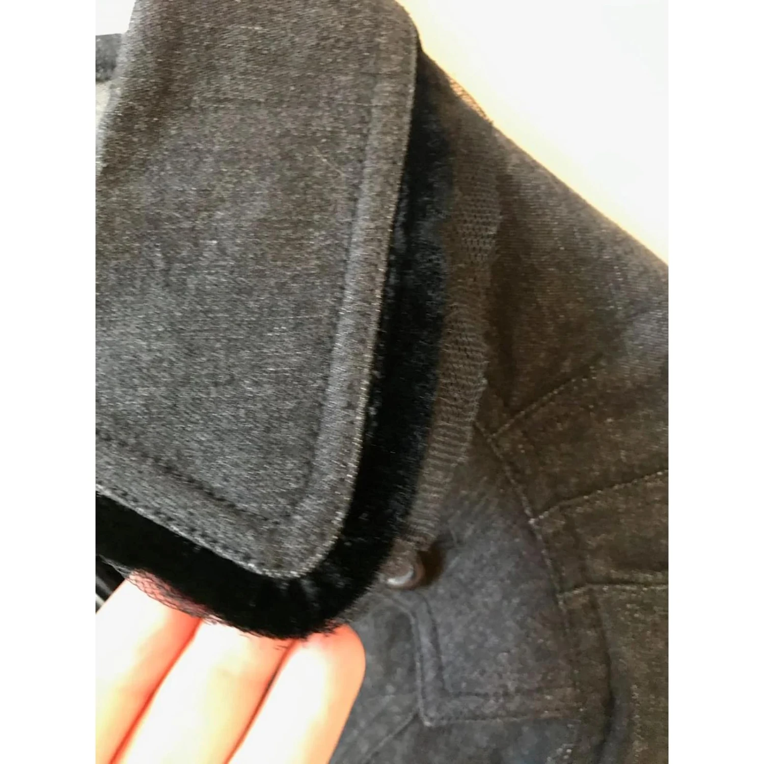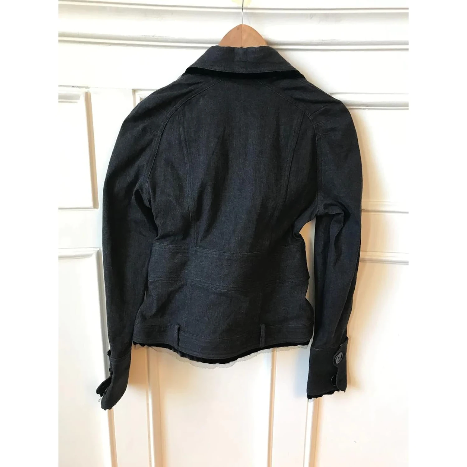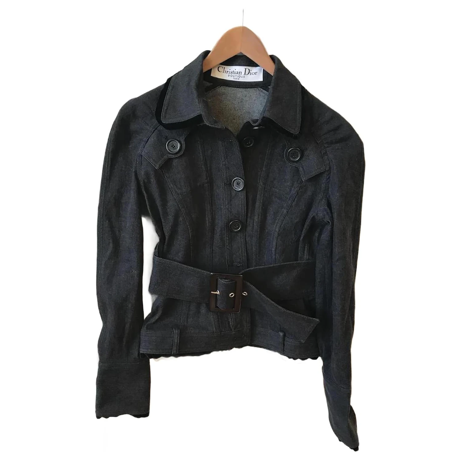 Veste Christian Dior, size 38. Veste en coton denim noir, fermetures boutons et agrémentées d’une ceinture. Signature Dior sur les boutons et le passant de ceinture. collier, manches et bas de la veste bordés de velours et tulle noir. Very good condition.