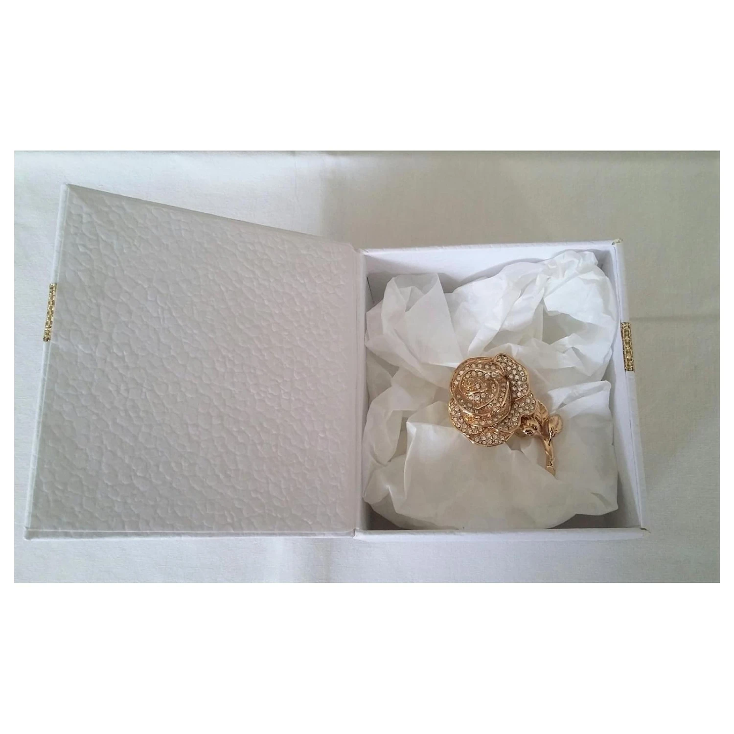 La broche sera accrochée dans le papier de soie de cet étui en excellent état et qui ferme par un aimant.